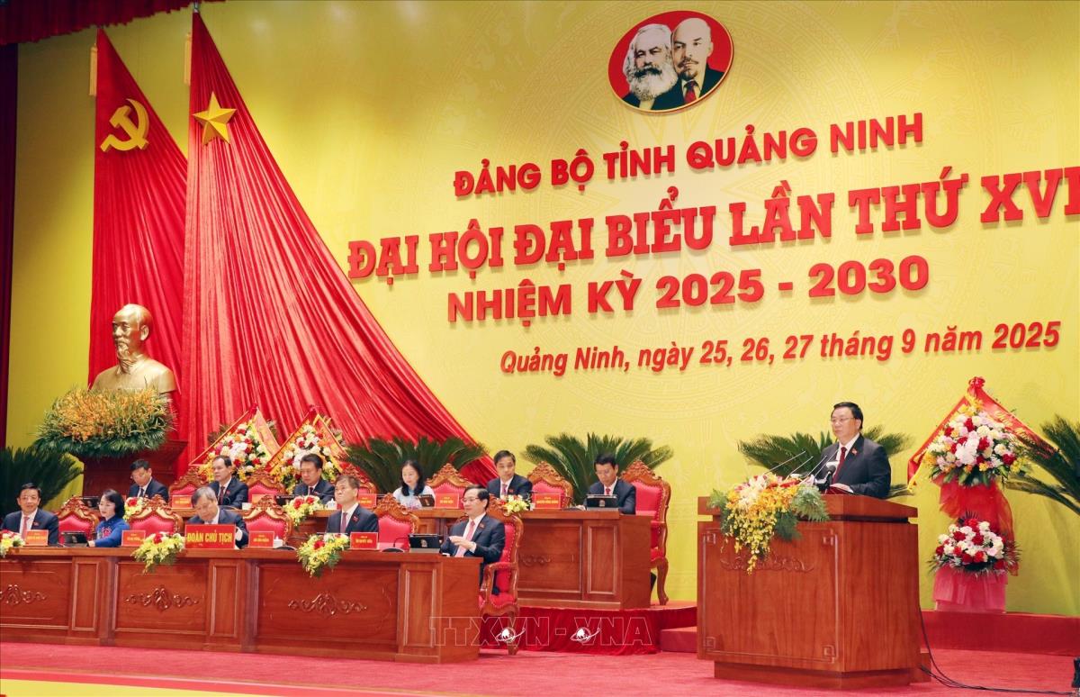 Quảng Ninh (TTXVN 26/9/2025) Ngày 26/9/2025, Đại hội đại biểu Đảng bộ tỉnh Quảng Ninh lần thứ XVI, nhiệm kỳ 2025-2030 chính thức khai mạc với sự tham dự của 366 đại biểu chính thức, đại diện cho trí tuệ, ý chí, niềm tin và khát vọng của hơn 103.000 đảng viên trong toàn Đảng bộ. Đồng chí Nguyễn Xuân Thắng, Ủy viên Bộ Chính trị, Chủ tịch Hội đồng Lý luận Trung ương, Giám đốc Học viện Chính trị Quốc gia Hồ Chí Minh dự và chỉ đạo.