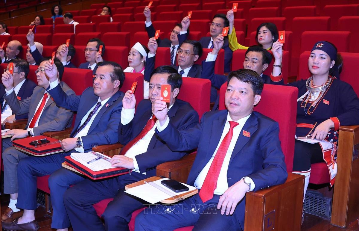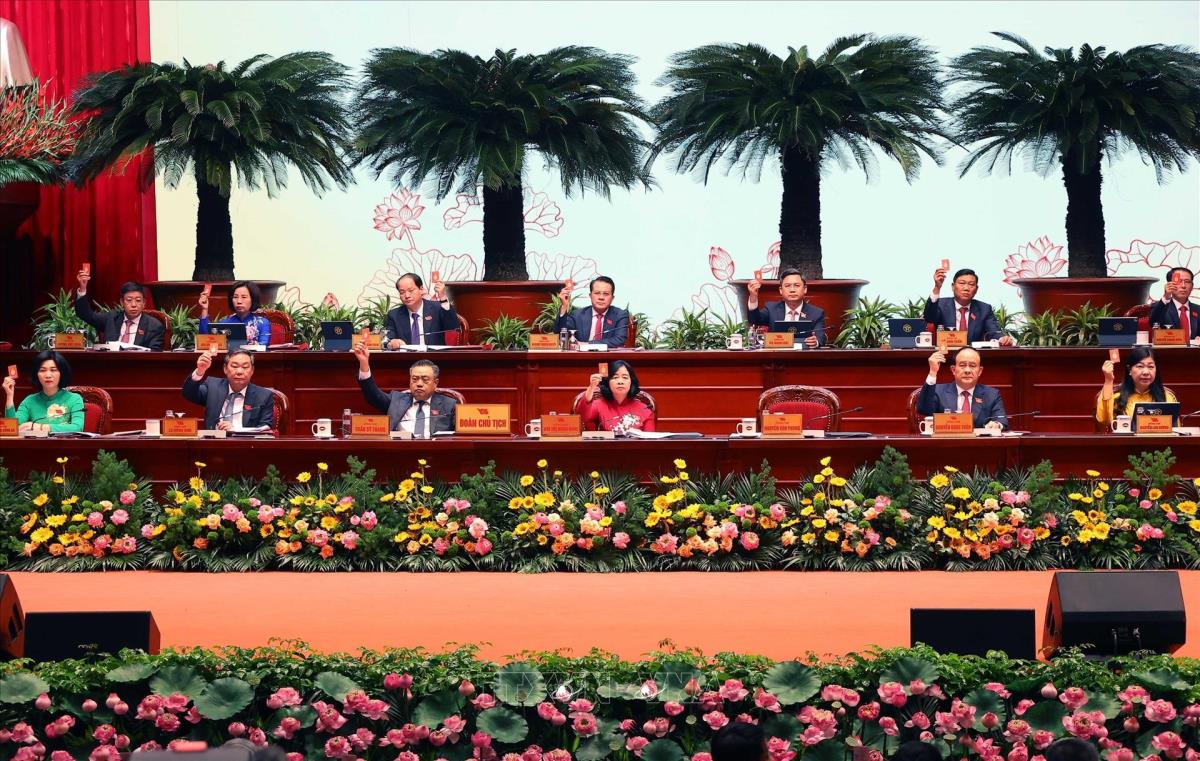 Đại hội biểu quyết về số lượng Ban Chấp hành Đảng bộ thành phố Hà Nội khóa XVIII, nhiệm kỳ 2025-2030 (16/10/2025). Ảnh: Văn Điệp – TTXVN