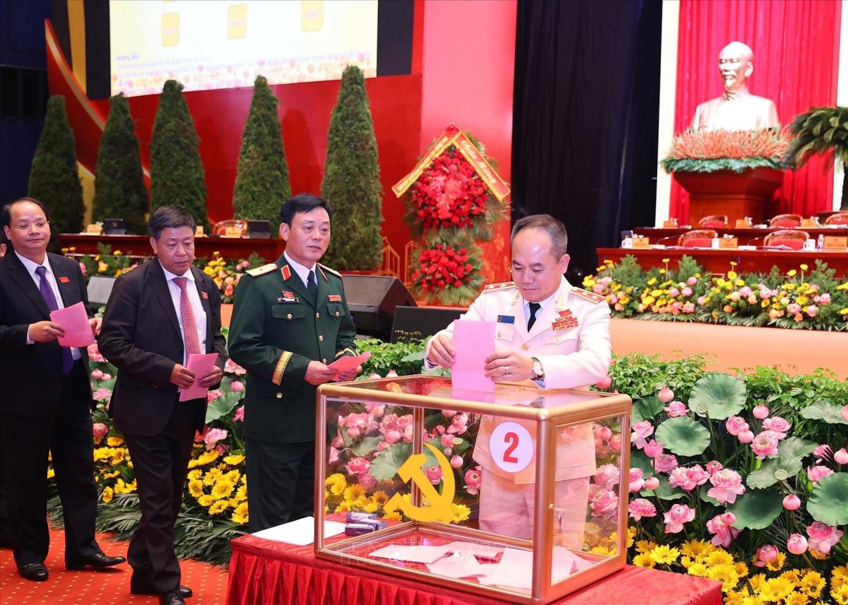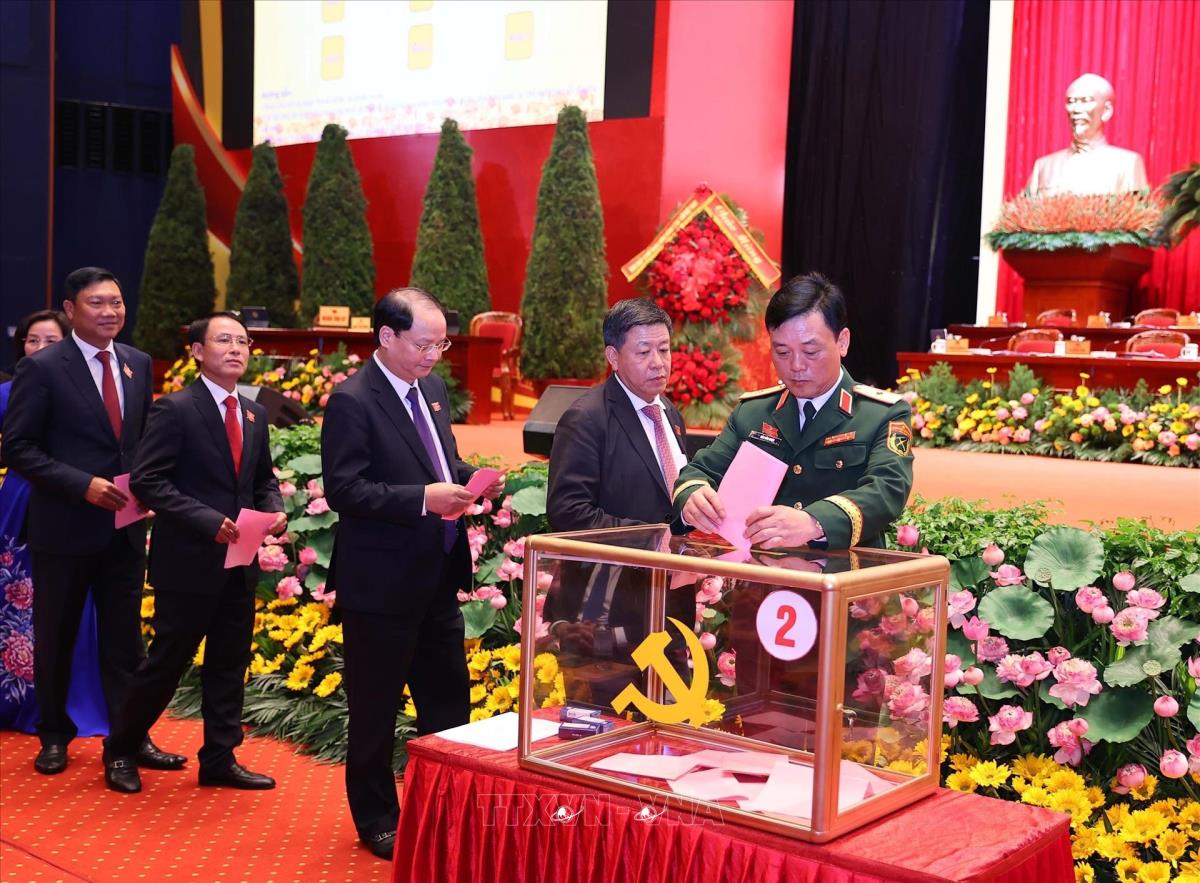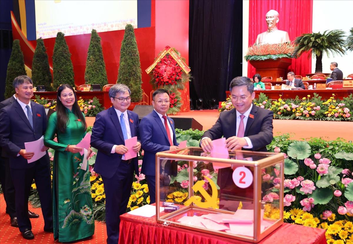 Đại biểu bỏ phiếu bầu Ban Chấp hành Đảng bộ thành phố Hà Nội khóa XVIII, nhiệm kỳ 2025-2030 (16/10/2025). Ảnh: Văn Điệp – TTXVN