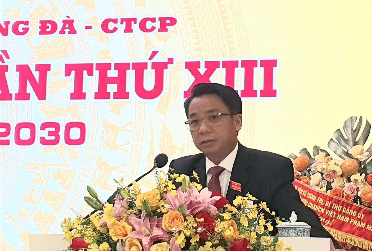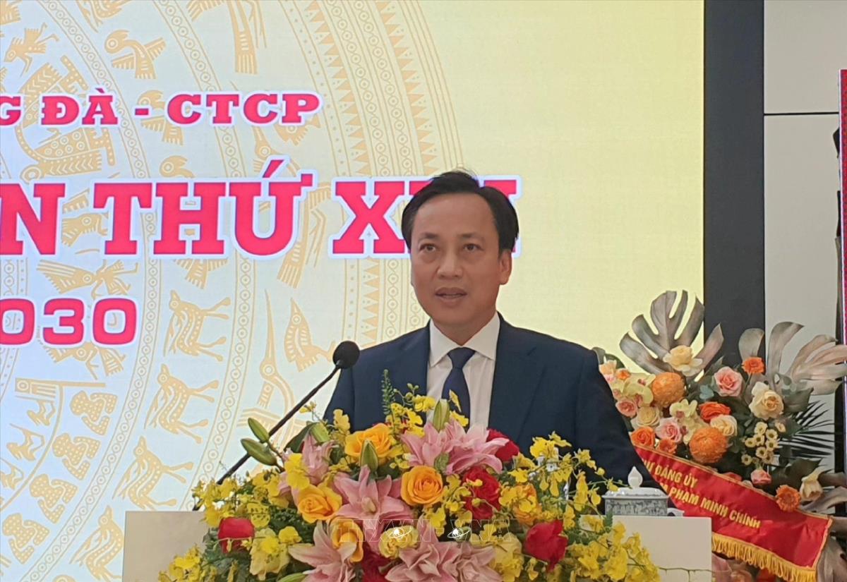 Nêu rõ, nhiệm kỳ 2025 - 2030 dự báo sẽ có nhiều thời cơ, thuận lợi, nhưng cũng đan xen không ít khó khăn, thách thức, đồng chí đề nghị mỗi cán bộ, đảng viên, người lao động của Tổng công ty tiếp tục phát huy hơn nữa tinh thần trách nhiệm, nỗ lực cống hiến, ra sức thi đua thực hiện thắng lợi nhiệm vụ chính trị được giao. Đẩy mạnh đổi mới mô hình quản trị doanh nghiệp, triển khai hiệu quả Nghị quyết số 57 của Trung ương về đột phá phát triển khoa học công nghệ, đổi mới sáng tạo và chuyển đổi số quốc gia, đẩy mạnh chuyển đổi số toàn diện, ứng dụng mạnh mẽ công nghệ thông tin trong quản trị, điều hành đầu tư và kinh doanh. Khẩn trương hoàn thành đề án tái cơ cấu Tổng công ty Sông Đà, nâng cao năng lực cạnh tranh, hiệu quả sử dụng vốn nhà nước tại doanh nghiệp.