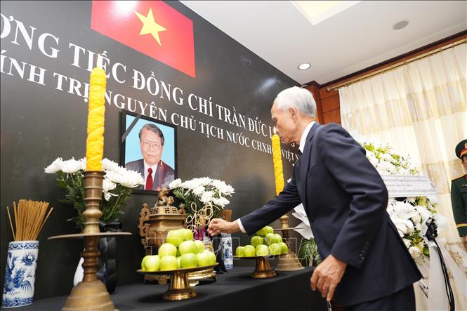 [Photo] Đại sứ quán Việt Nam tại Lào tổ chức lễ viếng nguyên Chủ tịch nước Trần Đức Lương