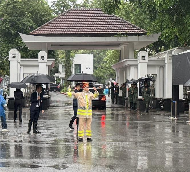 Ngay từ sáng sớm, lực lượng chức năng đã bố trí hàng trăm cán bộ chiến sĩ phối hợp với Công an các phường Phạm Đình Hổ, Bạch Đằng, lực lượng thanh niên tình nguyện… ứng trực tại một số tuyến đường dẫn vào Nhà tang lễ quốc gia (số 5 Trần Thánh Tông, Hà Nội) tổ chức phân luồng ngay từ phía ngoài như các ngã ba, ngã tư, ngã 5 Lò Đúc – YecXanh, Lò Đúc – Nguyễn Công Trứ, Lò Đúc – Phạm Đình Hổ, Trần Hưng Đạo - Trần Thánh Tông...