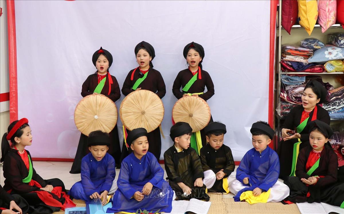 Hà Nội (TTXVN 23/2/2023) Ai đã từng nghe những câu quan họ trữ tình, da diết chắc hẳn sẽ chẳng thể nào quên hình ảnh tà áo tứ thân bay trong gió, với nón quai thao nghiêng nghiêng, cùng ánh mắt lúng liếng trao gửi của những anh hai, chị hai bên cổng làng, đầu con ngõ nhỏ hay bên bến nước, sân đình...