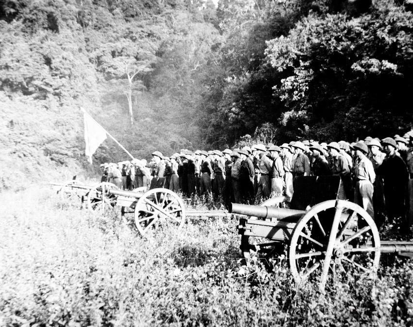 Thực hiện đường lối chiến tranh nhân dân toàn dân, toàn diện, lâu dài, dựa vào sức mình là chính, dưới sự lãnh đạo tài tình của Đảng và Chủ tịch Hồ Chí Minh, quân và dân ta đã kết thúc thắng lợi 9 năm trường kỳ kháng chiến chống Pháp bằng Chiến dịch Điện Biên Phủ năm 1954 “lừng lẫy năm châu, chấn động địa cầu”. Ảnh: TTXVN