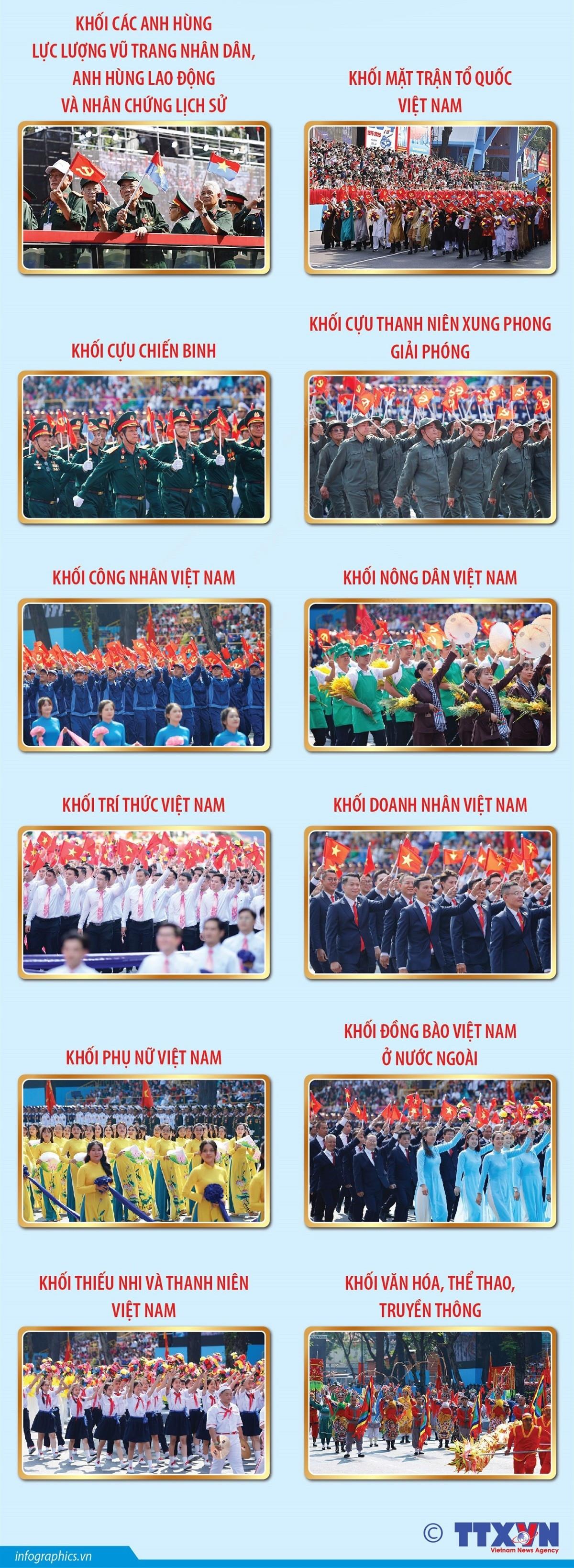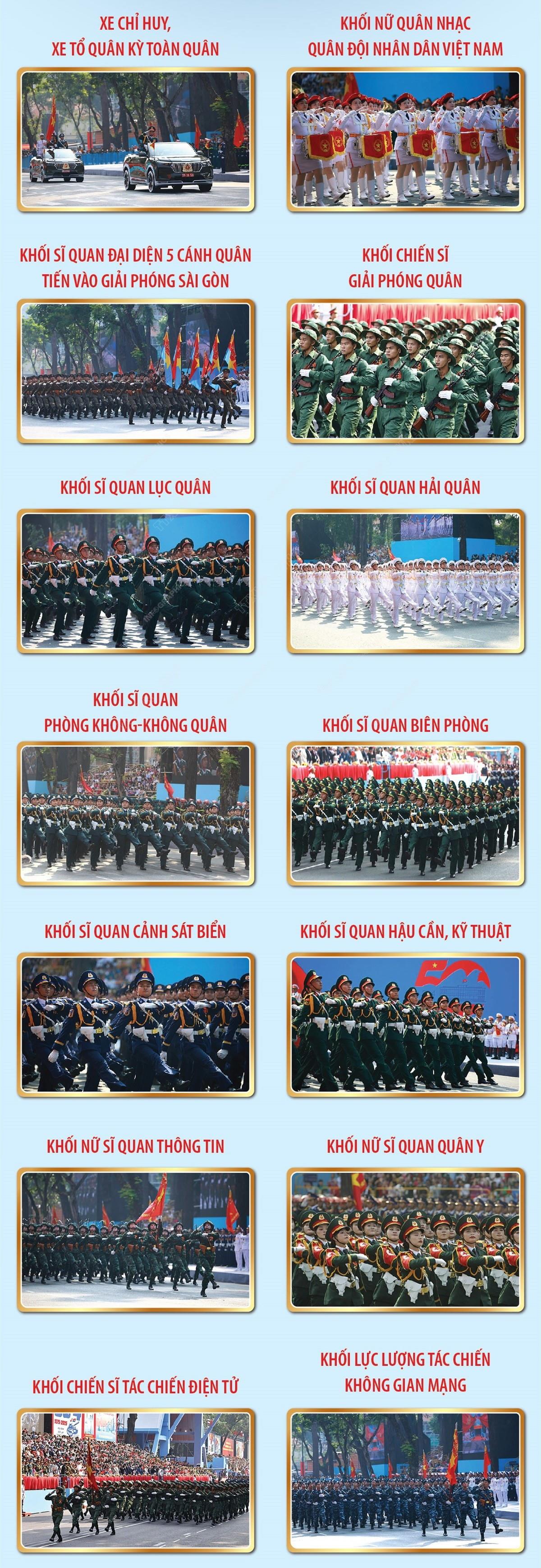[Infographics] Danh sách các khối tham gia diễu binh, diễu hành kỷ niệm 50 năm thống nhất