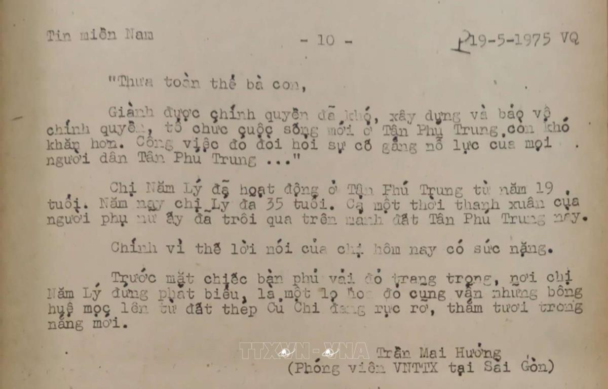 Từ khóa:Giải phóng miền Namthống nhất đất nướcThông tấn xã Giải phóngCủ ChiThành đồng Tổ quốcThành phố Hồ Chí Minh