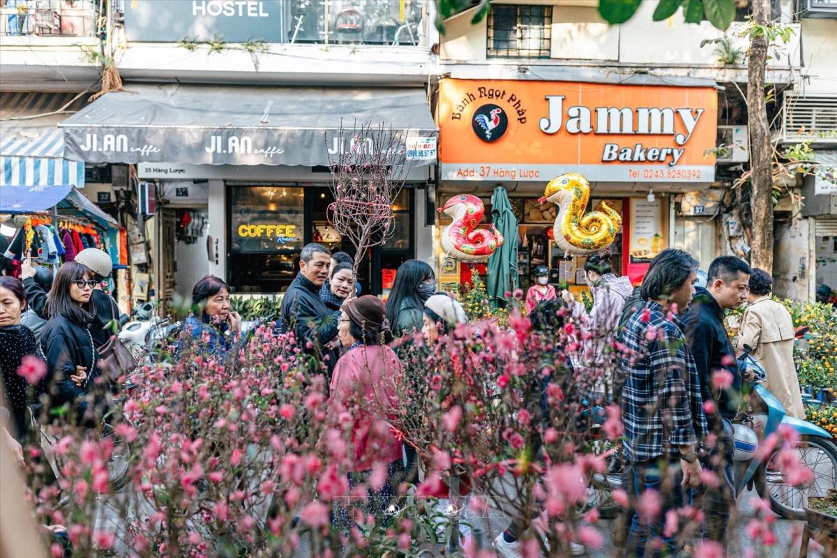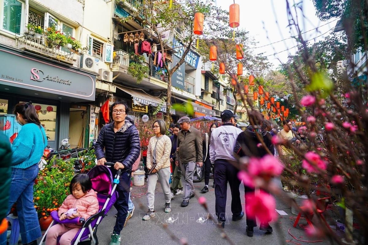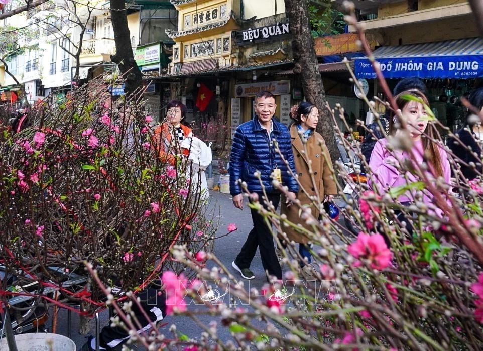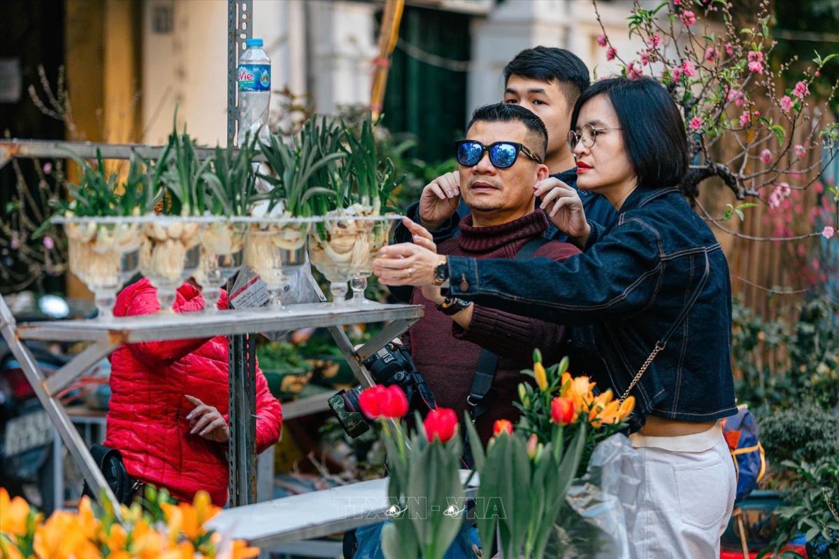 Trong dịp này, chợ hoa Hàng Lược cũng là một địa điểm thu hút khách du lịch đến khám phá văn hoá của Hà Nội (27/1/2025). Ảnh: Khánh Hoà - TTXVN