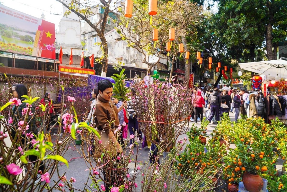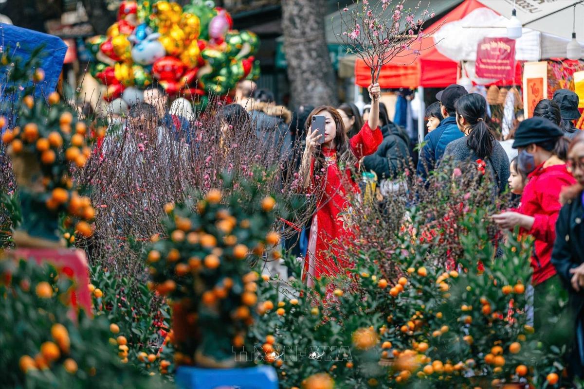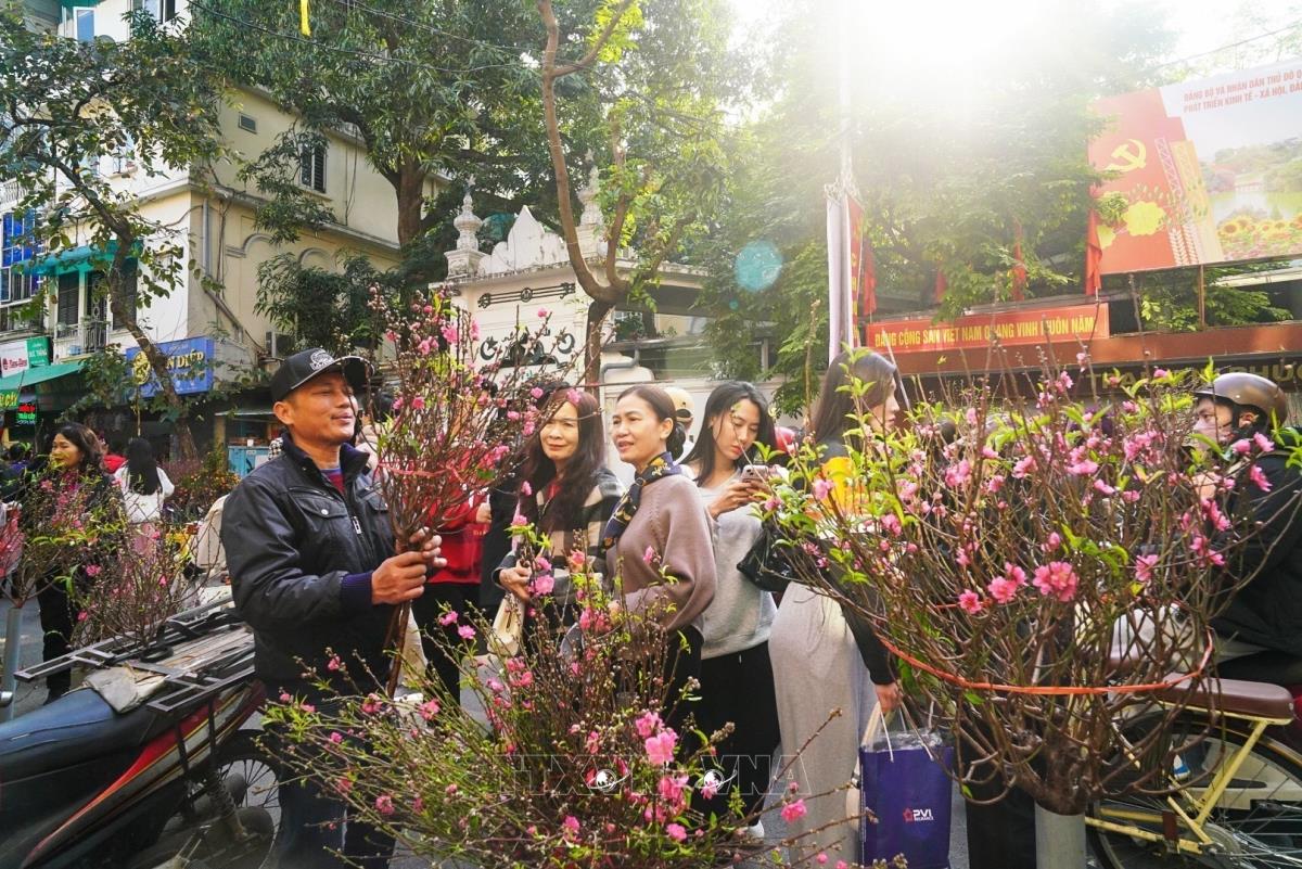 Trong dịp này, chợ hoa Hàng Lược cũng là một địa điểm thu hút khách du lịch đến khám phá văn hoá của Hà Nội (27/1/2025). Ảnh: Khánh Hoà - TTXVN