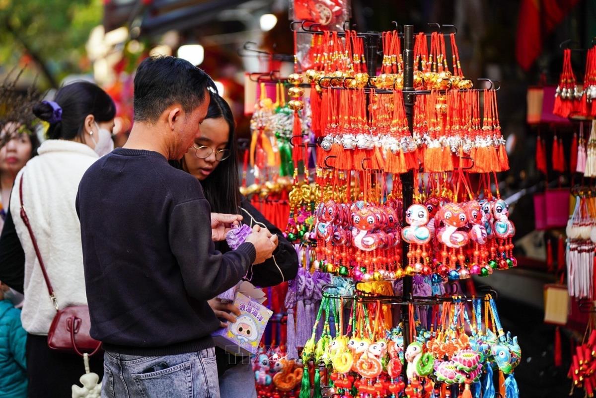 Với nhiều người Hà Nội, đi chợ Hàng Lược sắm sửa Tết là một thói quen mỗi dịp Tết đến, Xuân về (27/1/2025). Ảnh: Phạm Tuấn Anh - TTXVN