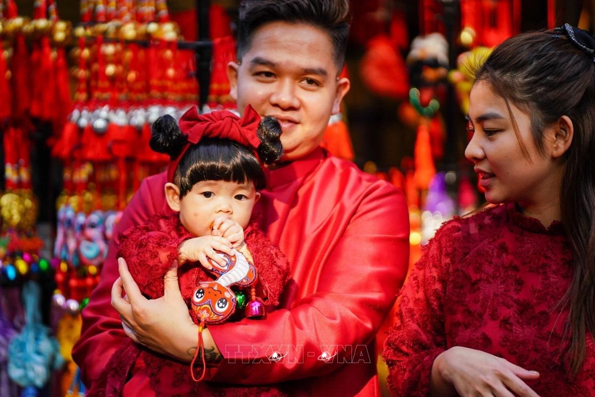 Những người nước ngoài cũng thích thú sắm sửa, chuẩn bị đón Tết cổ truyền của Việt Nam (27/1/2025). Ảnh: Phạm Tuấn Anh - TTXVN