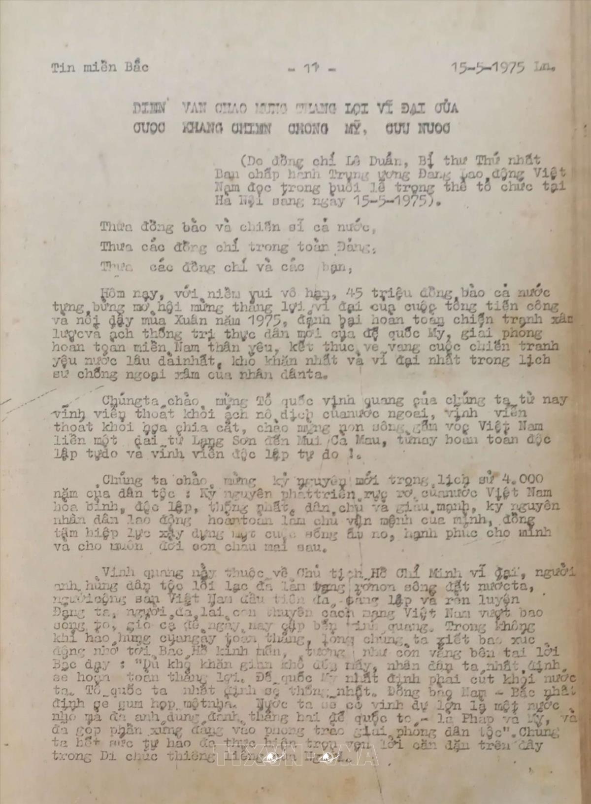 Từ khóa:Giải phóng miền Namthống nhất đất nướcĐồng chí Lê DuẩnDiễn văn mừng chiến thắng 30/4/1975Chiến thắng 30/4/1975
