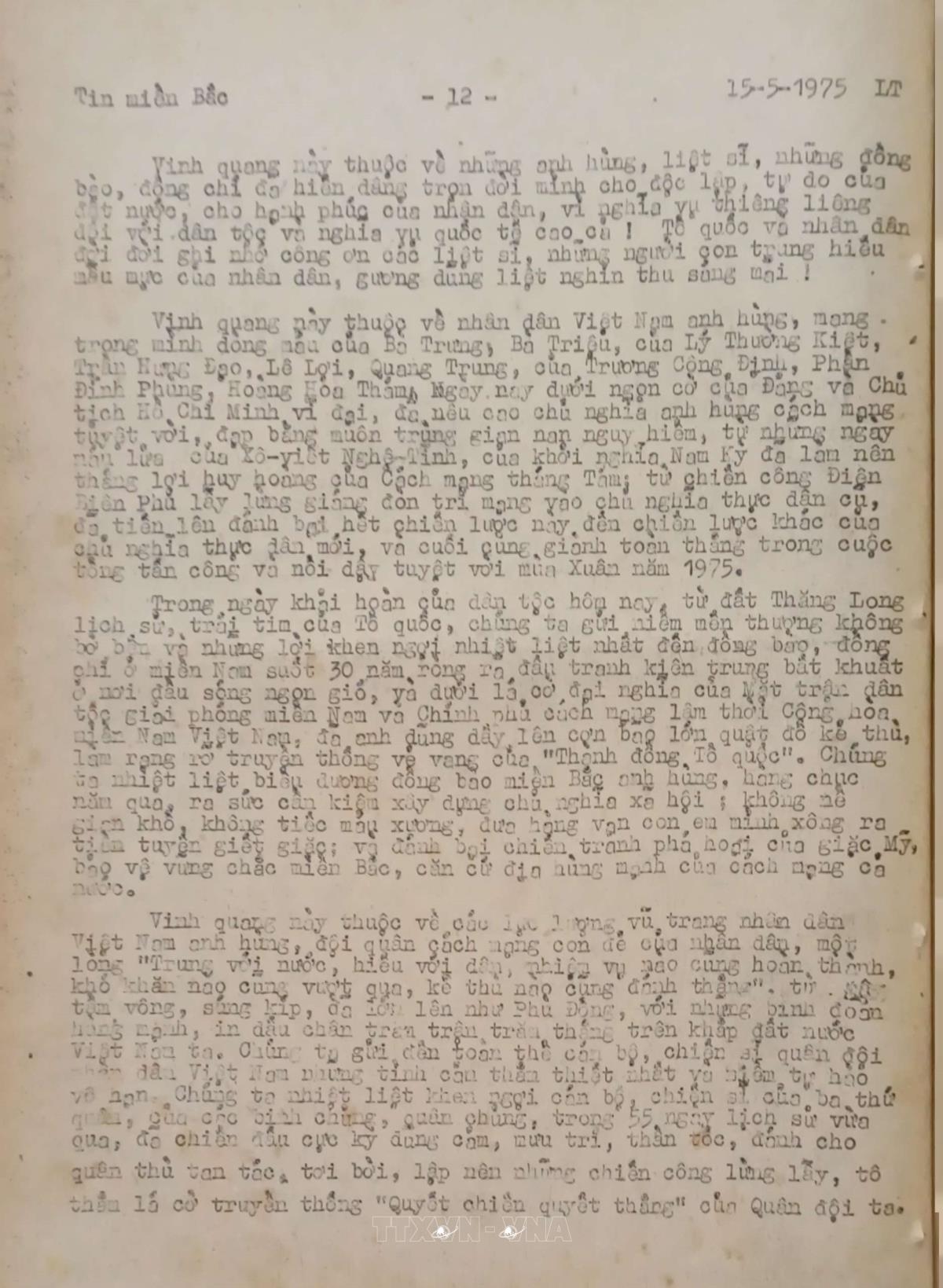 hồ sơ HS_QPA_000168464Việt Nam Thông tấn xã đưa tin về ngày giải phóng miền Nam, thống nhất đất nước 30/4/1975
