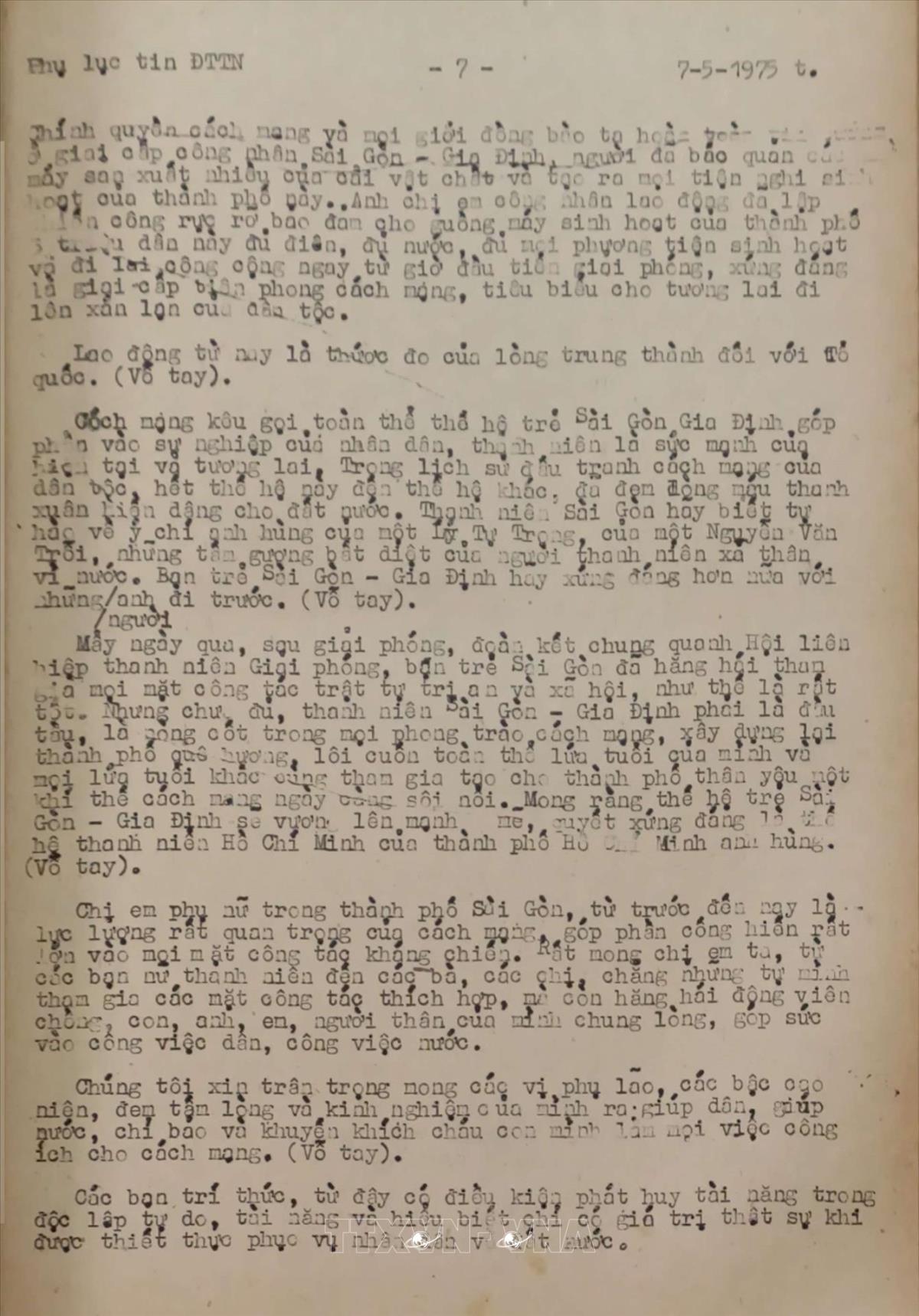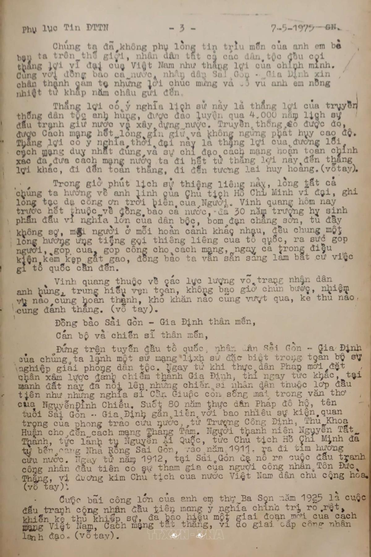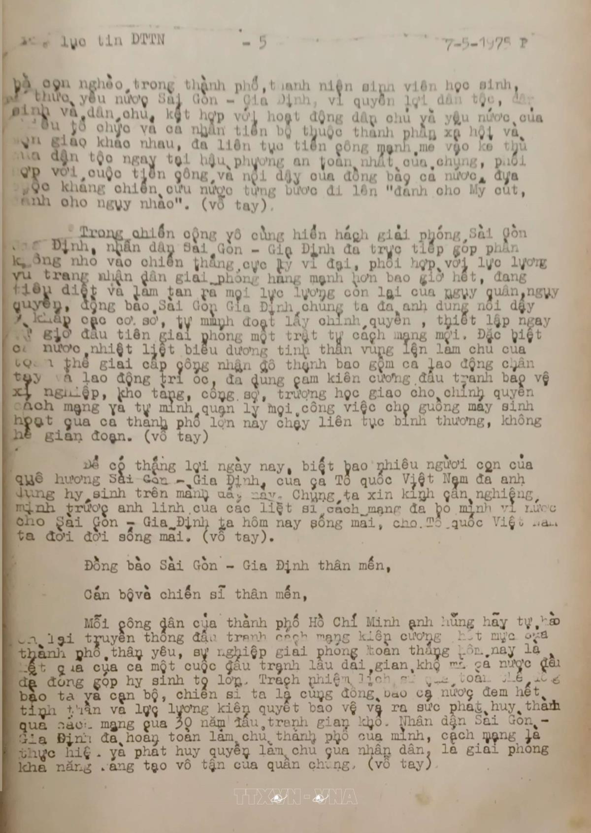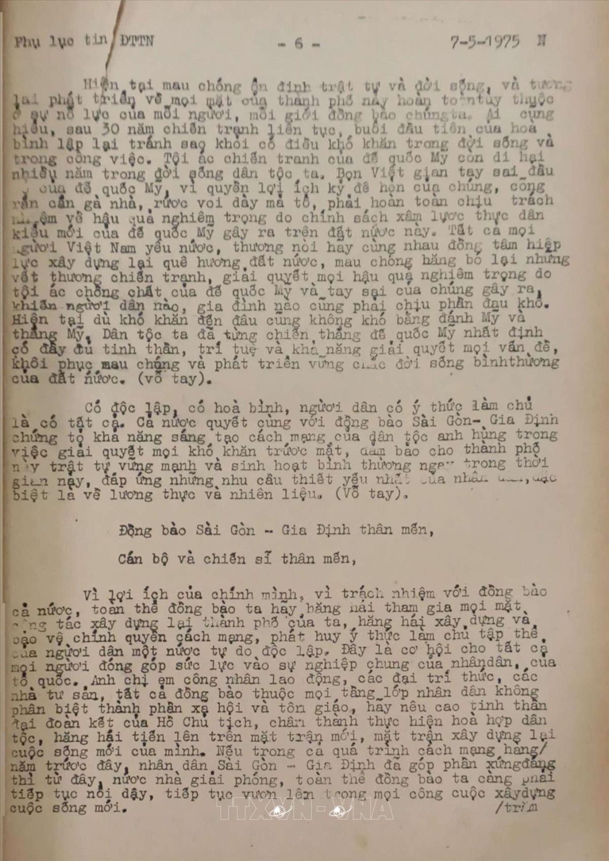 Tin đấu tranh thống nhất của Việt Nam Thông tấn xã, ngày 7/5/1975