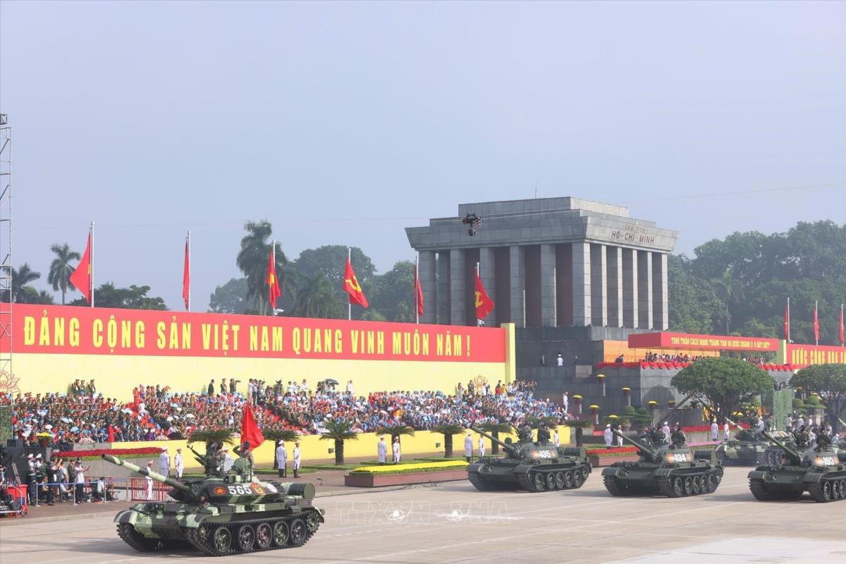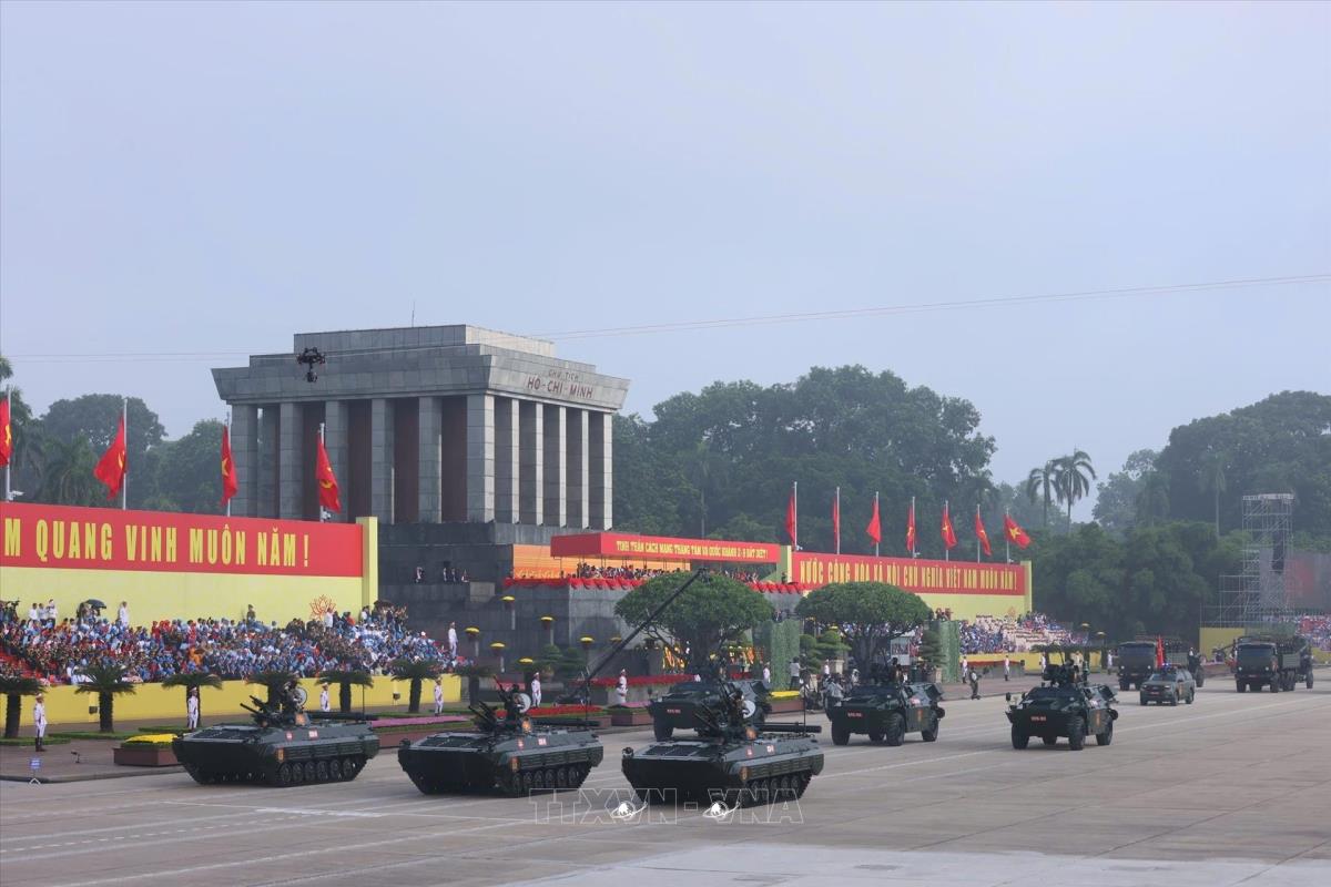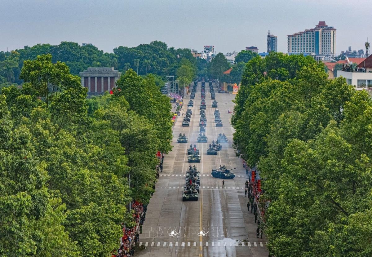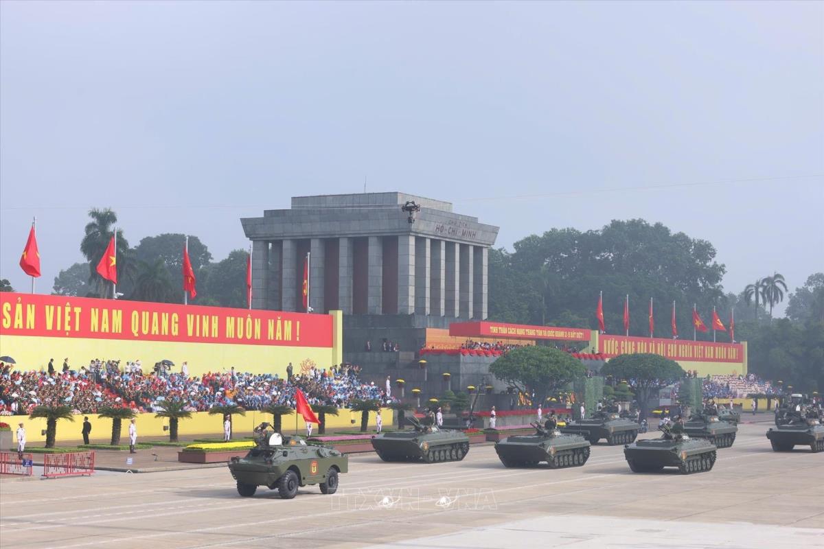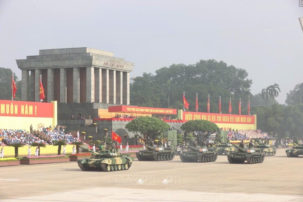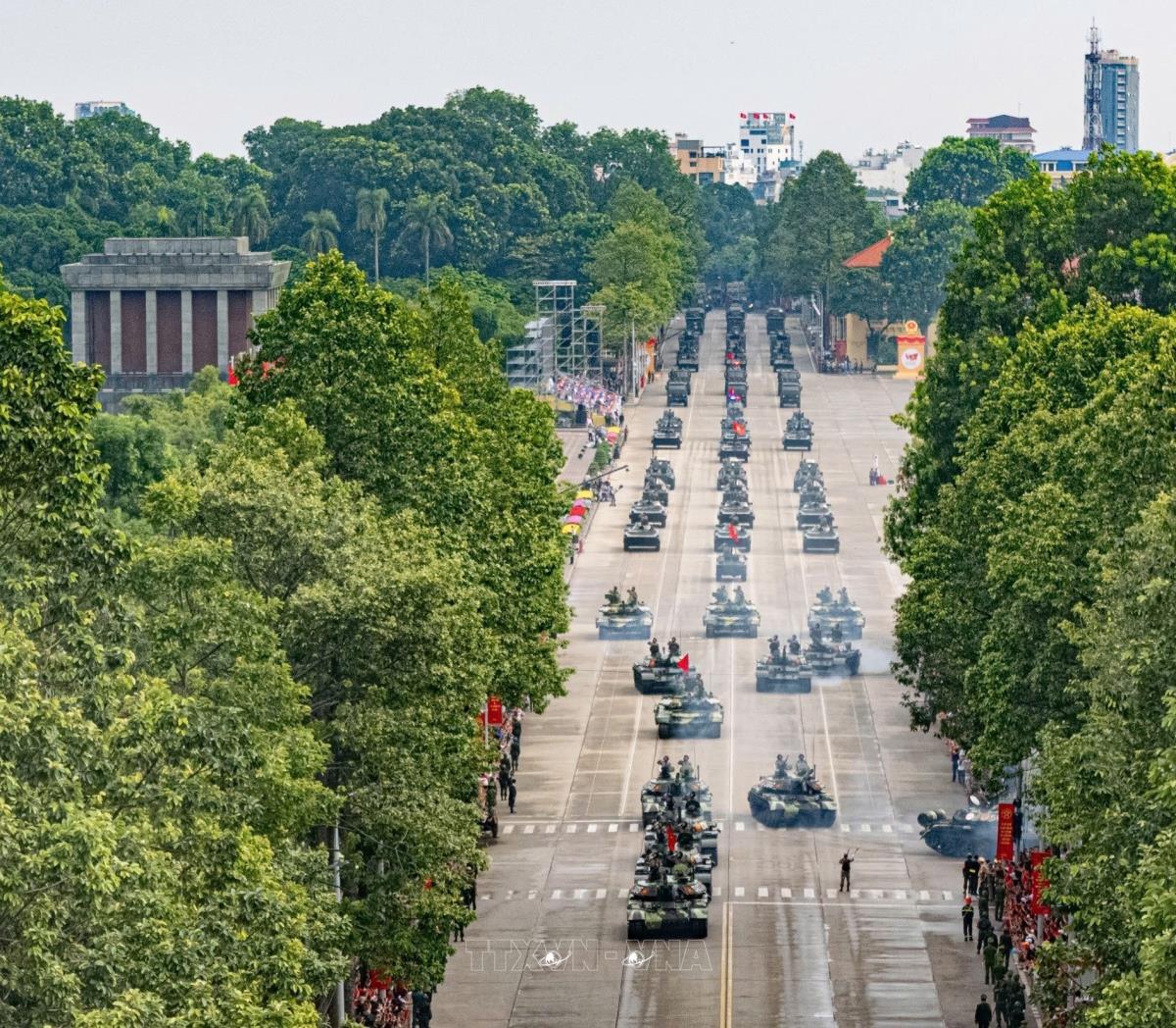 Khối xe Tăng thiết giáp diễu binh trên Quảng trường Ba Đình. Ảnh: Phạm Tuấn Anh - TTXVN