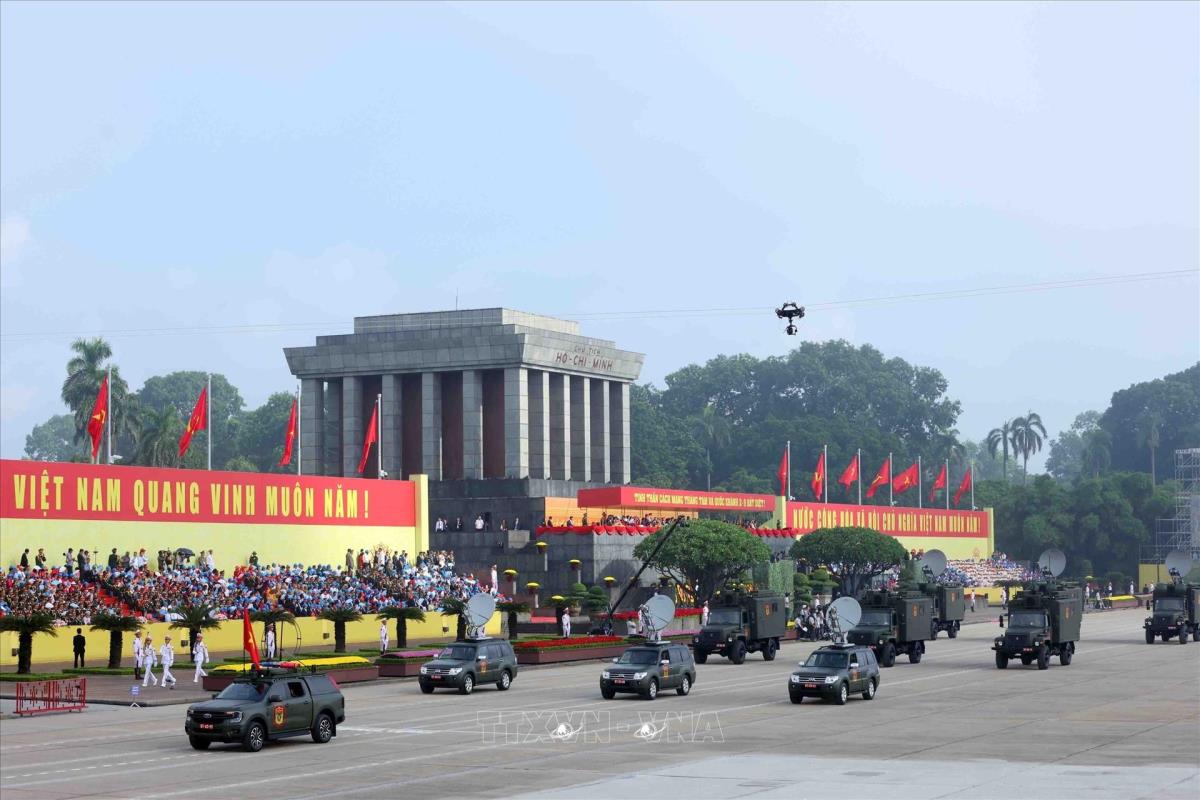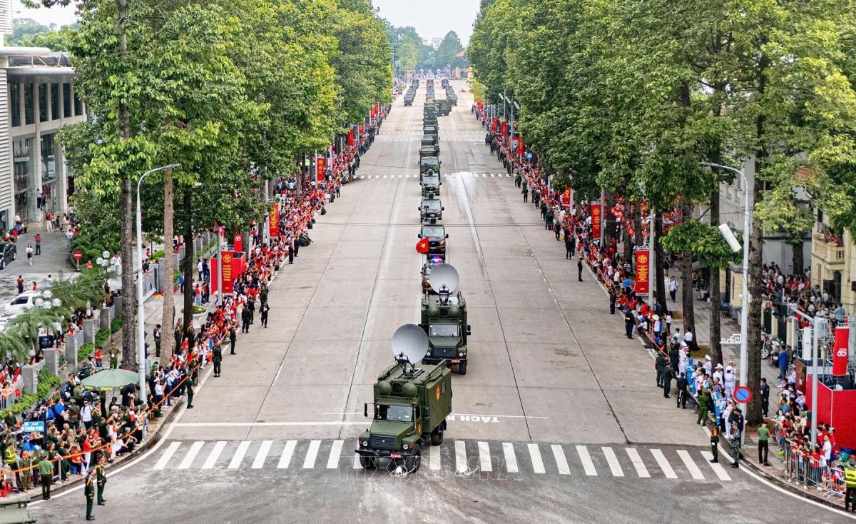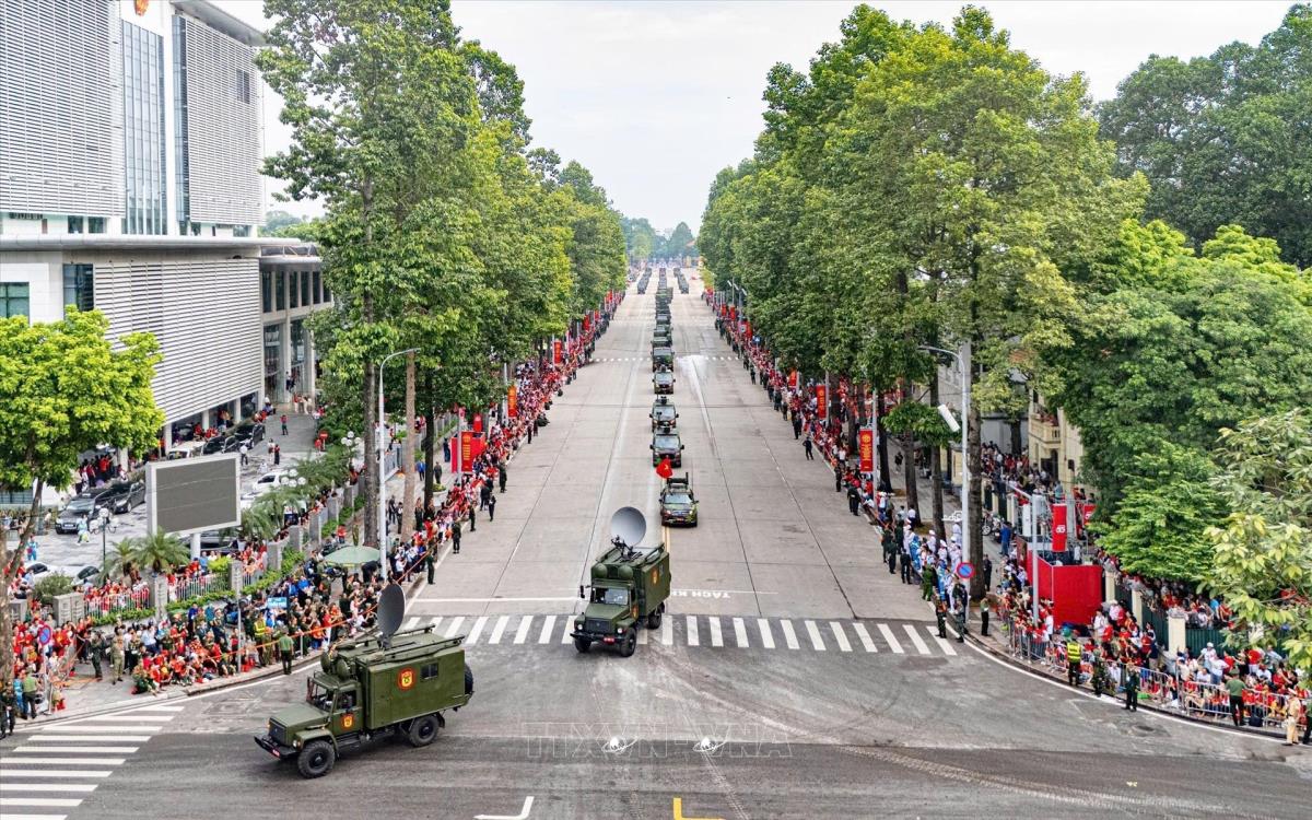 Đội hình xe thông tin quân sự cơ động: Khối xe của Binh chủng Thông tin liên lạc (2/9/2025). Ảnh: Phạm Kiên - TTXVN
