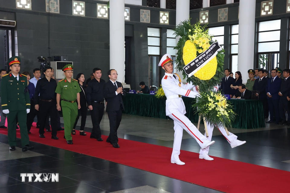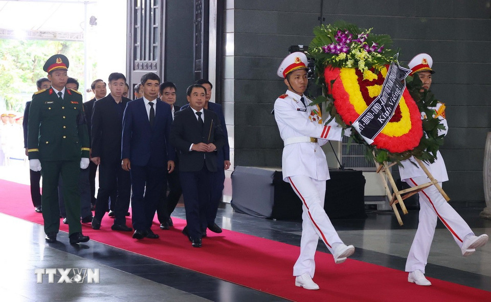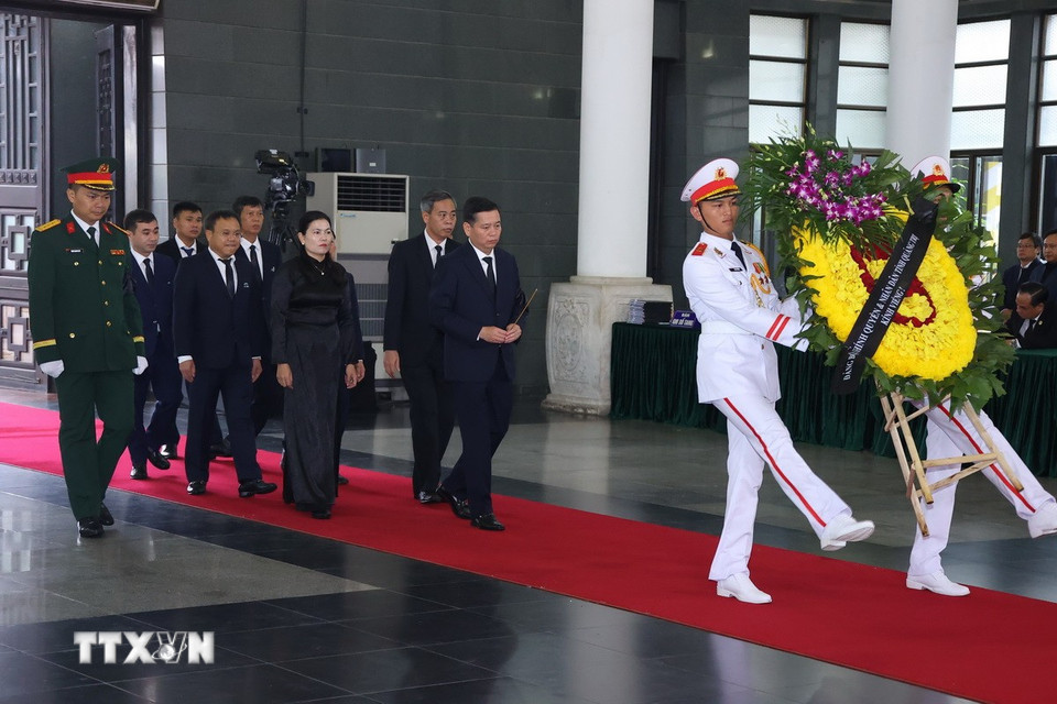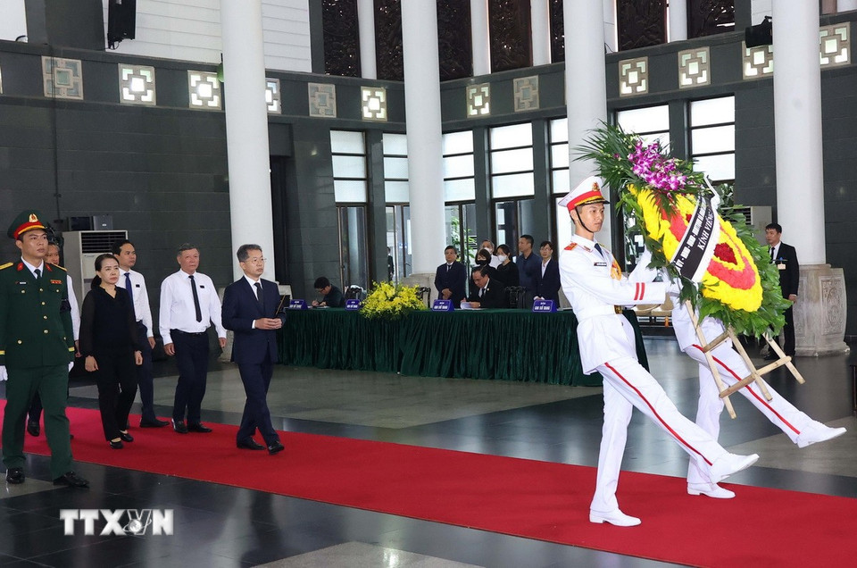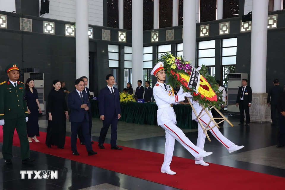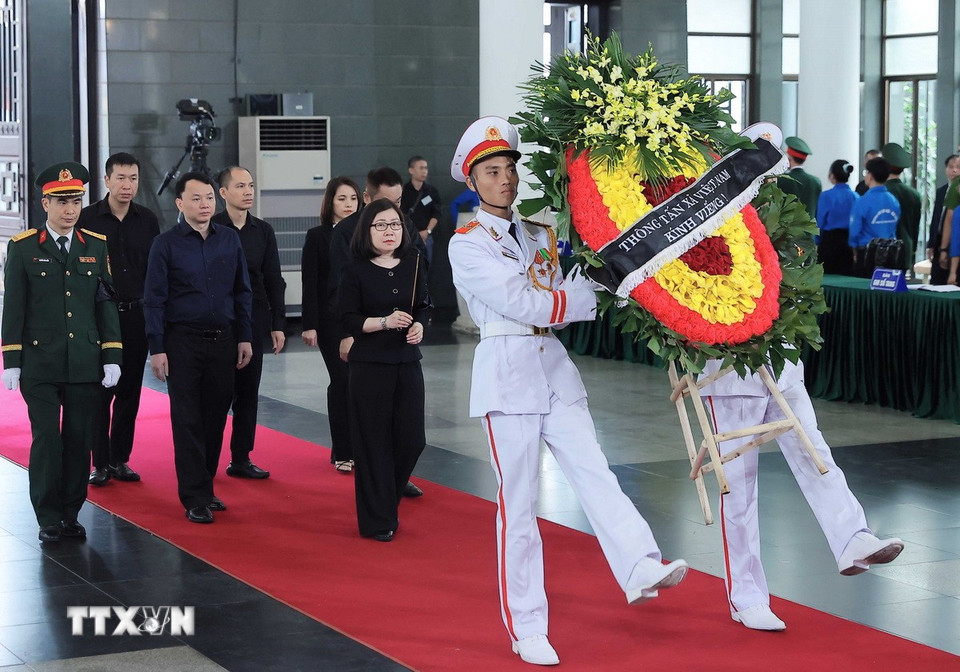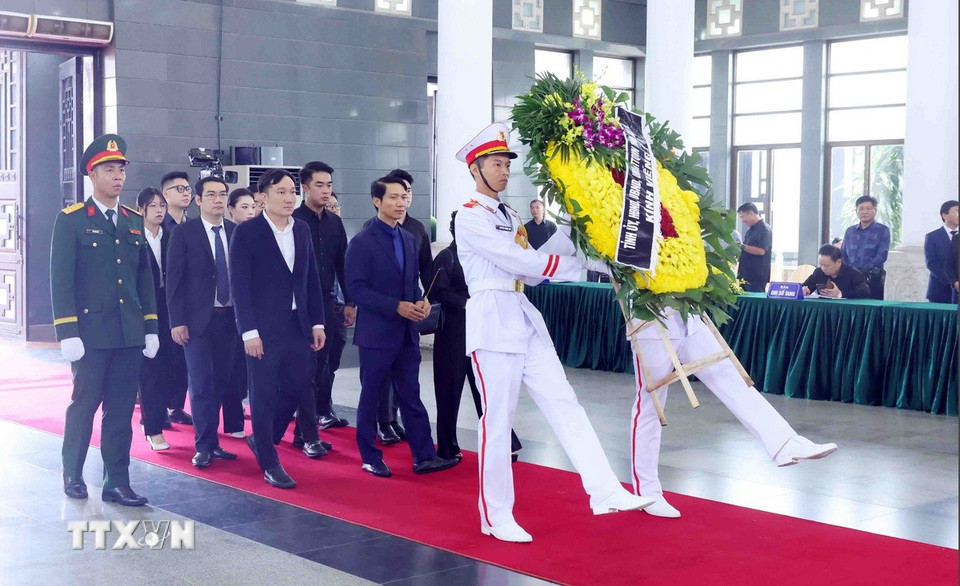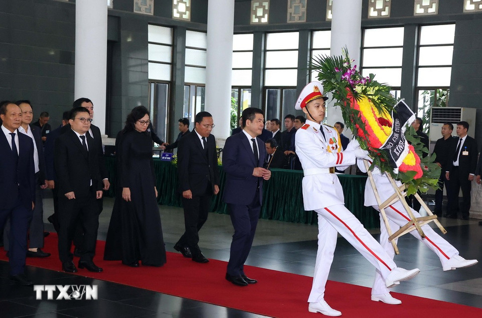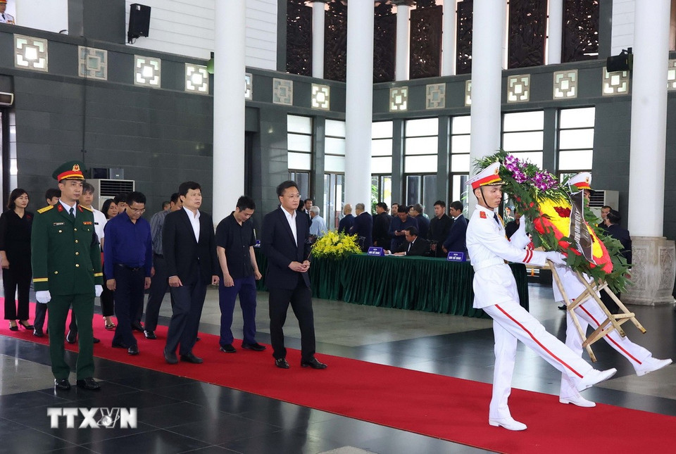 Hà Nội (TTXVN 24/5/2025) Chiều 24/5, tại Nhà tang lễ Quốc gia (Hà Nội), các đoàn đại biểu Ban, bộ, ngành, đoàn thể TW và địa phương, các tổ chức quốc tế tại Việt Nam tiếp tục đến viếng nguyên Chủ tịch nước Trần Đức Lương.