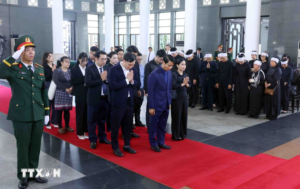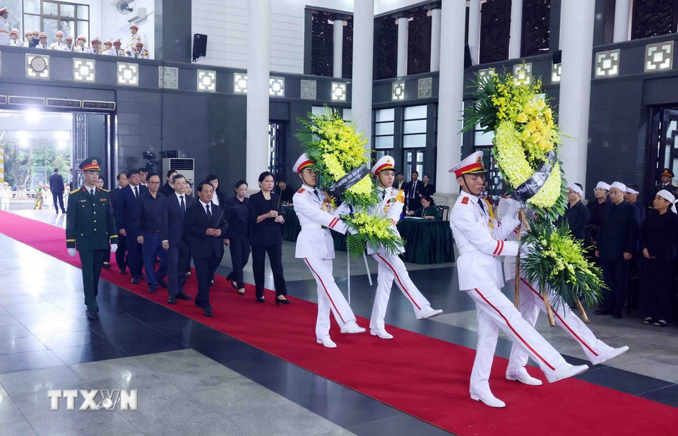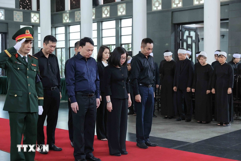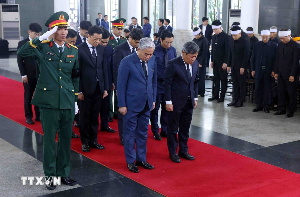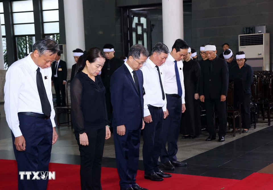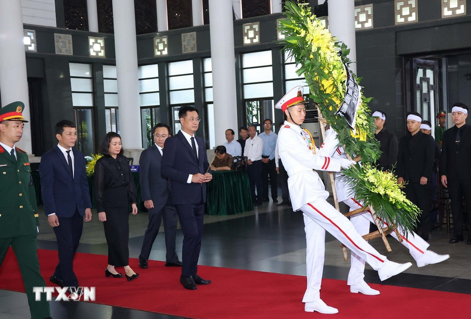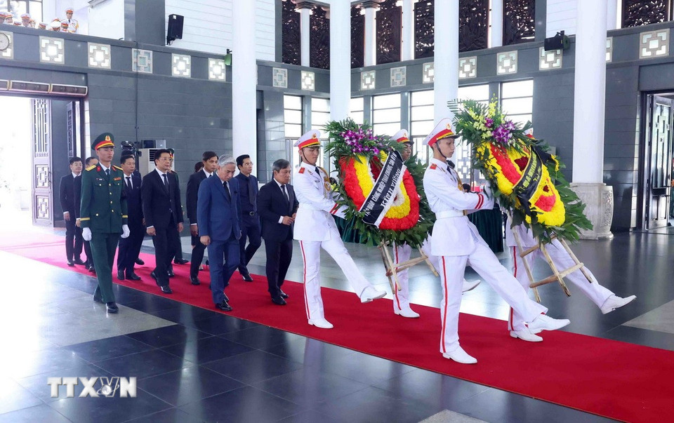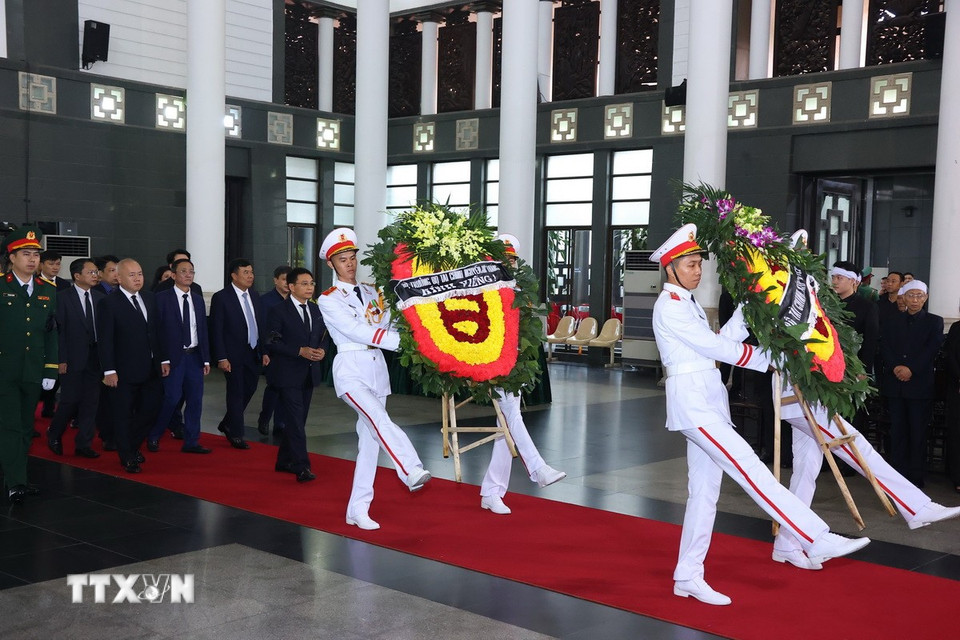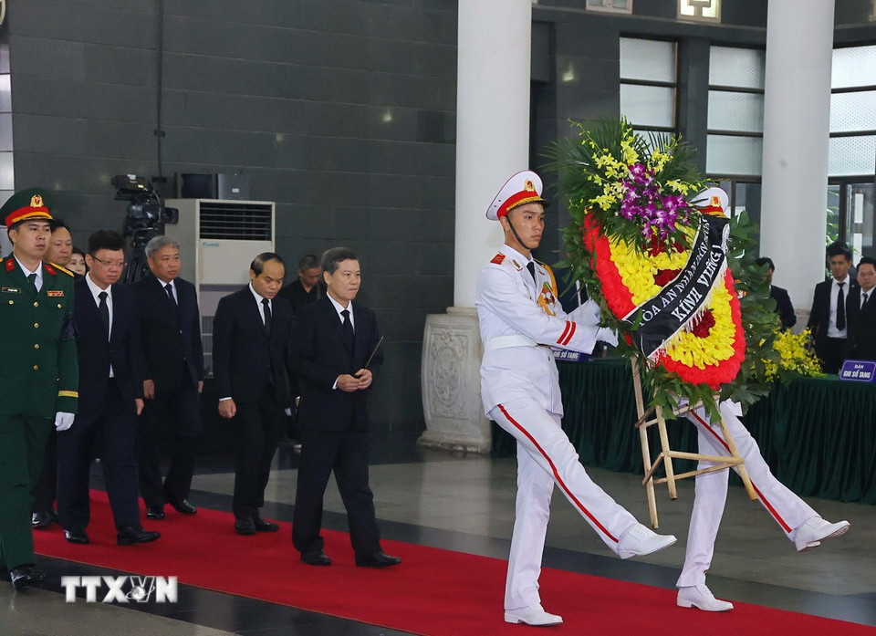 Hà Nội (TTXVN 24/5/2025) Chiều 24/5, tại Nhà tang lễ Quốc gia (Hà Nội), các đoàn đại biểu Ban, bộ, ngành, đoàn thể TW và địa phương, các tổ chức quốc tế tại Việt Nam tiếp tục đến viếng nguyên Chủ tịch nước Trần Đức Lương.