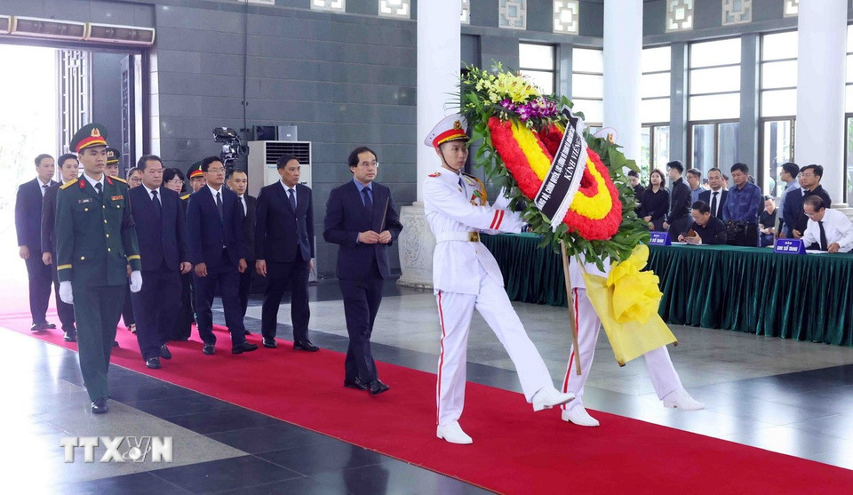 Đoàn đại biểu Tỉnh ủy, Hội đồng Nhân dân, Ủy ban Nhân dân, Ủy ban Mặt trận Tổ quốc Việt Nam tỉnh Thanh Hóa viếng nguyên Chủ tịch nước Trần Đức Lương, ngày 24/5/2025. (Ảnh: TTXVN)