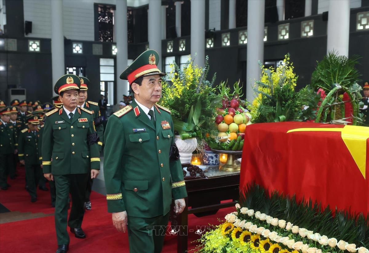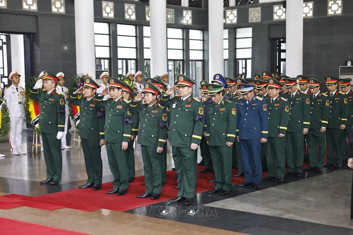 Đoàn Quân uỷ Trung ương - Bộ Quốc phòng do Đại tướng Phan Văn Giang, Uỷ viên Bộ Chính trị, Phó Bí thư Quân uỷ Trung ương, Bộ trưởng Bộ Quốc phòng dẫn đầu viếng nguyên Chủ tịch nước Trần Đức Lương (24/5/2025). Ảnh: TTXVN