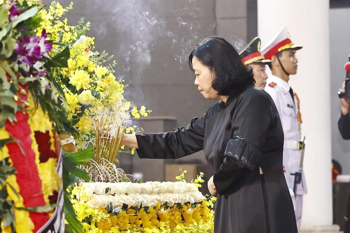 Đoàn Thành uỷ, HĐND, UBND, Uỷ ban MTTQ Việt Nam thành phố Hà Nội do đồng chí Bùi Thị Minh Hoài, Uỷ viên Bộ Chính trị, Bí thư Thành uỷ dẫn đầu viếng nguyên Chủ tịch nước Trần Đức Lương (24/5/2025). Ảnh: TTXVN