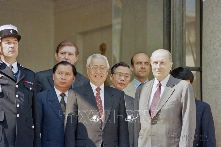 Tổng thống Francois Mitterrand tiếp Thủ tướng Võ Văn Kiệt thăm chính thức Cộng hòa Pháp từ 23 đến 28/6/1993 (Paris, 25/6/1993). Ảnh: Minh Đạo – TTXVN
