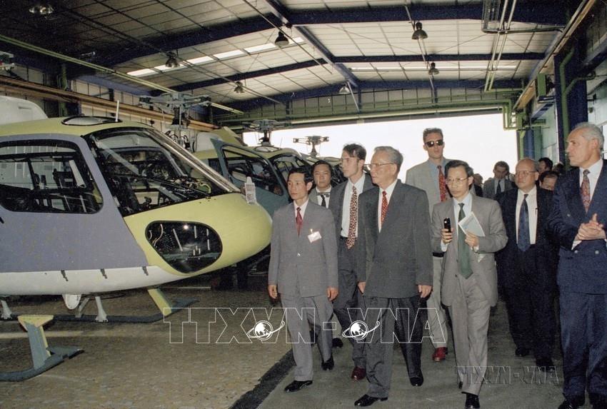 Ngày 10/5/1995, Chủ tịch nước Lê Đức Anh thăm phân xưởng lắp ráp máy bay của hãng chế tạo máy bay lên thẳng Eurocopter tại thành phố Marseille, trong chuyến thăm chính thức Cộng hoà Pháp. Ảnh: Cao Phong - TTXVN