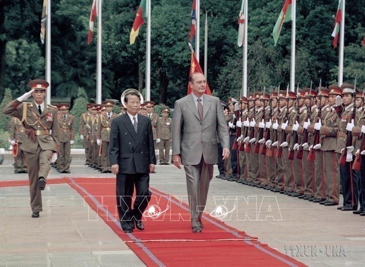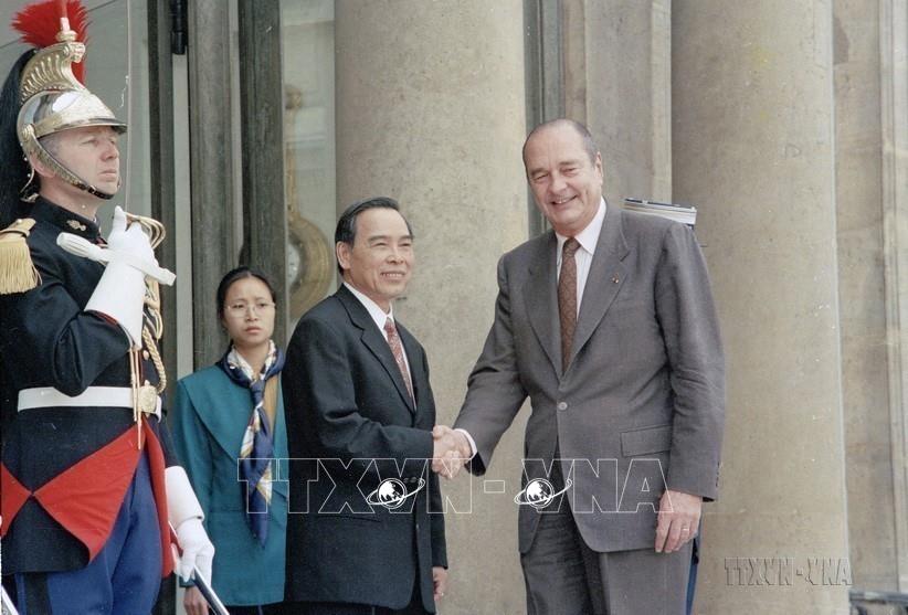 Tổng thống Jacques Chirac tiếp Thủ tướng Phan Văn Khải thăm chính thức Cộng hoà Pháp (Paris, 1/4/1998). Ảnh: Kim Hùng - TTXVN