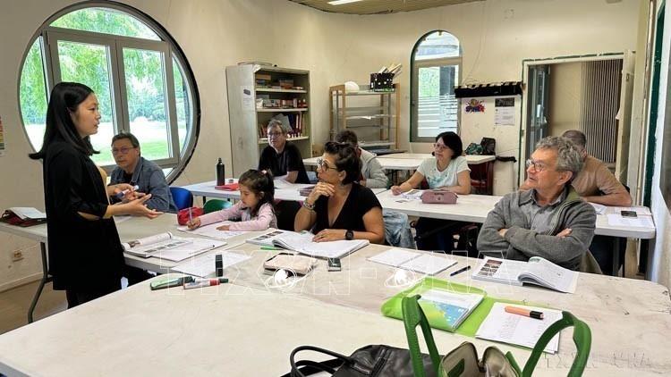 Bordeaux là thành phố lớn thứ hai tại Pháp, sau Paris, có đông đảo lượng người theo học tiếng Việt. Không chỉ được dạy trong cộng đồng, tiếng Việt còn đi vào chương trình đào tạo tại trường đại học ở đây. Trong ảnh: Một lớp học tiếng Việt tại trung tâm sinh hoạt cộng đồng Grand Parc của thành phố Bordeaux (Pháp). Ảnh: Thu Hà - TTXVN