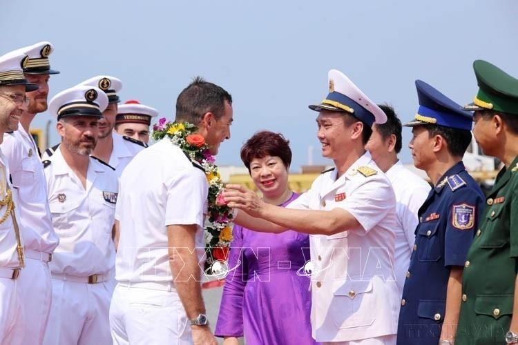 Lễ đón sỹ quan, thủy thủ tàu tuần dương Vendemiaire của Hải quân Pháp cập cảng Tiên Sa, bắt đầu thăm xã giao thành phố Đà Nẵng trong 5 ngày (11/4/2024). Ảnh: Trần Lê Lâm – TTXVN