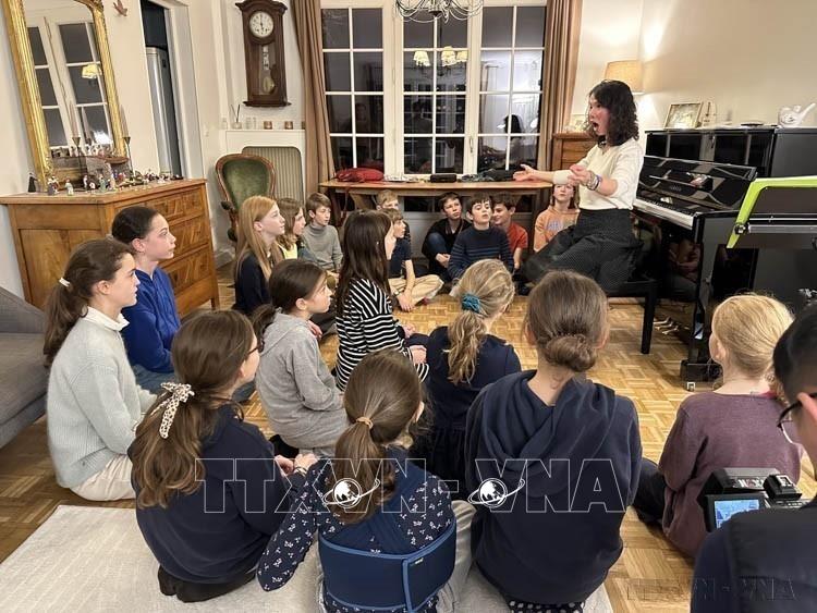 Dàn hợp ca Choeur Tim của trẻ em thành phố Versailles (Pháp) ra đời vào tháng 3/2023, với khoảng 30 trẻ em từ 8 đến 12 tuổi đến từ các gia đình người Pháp, Pháp-Việt và Việt Nam ở thành phố Versailles. Dàn hợp xướng Choeur Tim đã tham gia nhiều buổi hòa nhạc và lễ hội với nhiều tiết mục kết hợp giữa các bài hát truyền thống và hiện đại, bằng tiếng Việt và tiếng Pháp. Ảnh: Nguyễn Thu Hà - TTXVN