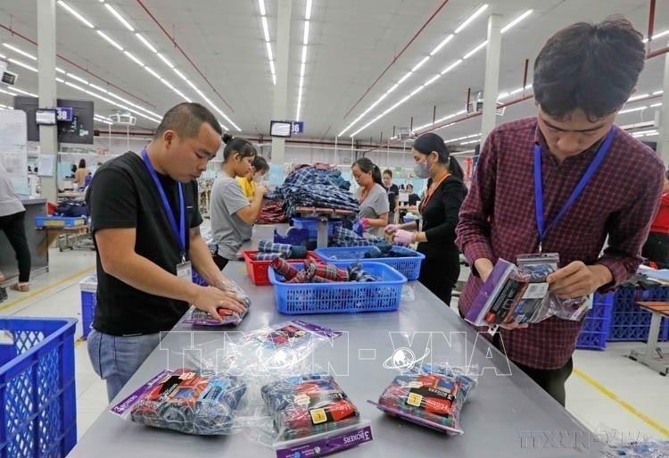 Công ty SCAVI Huế, 100% vốn đầu tư của Tập đoàn Financière B’Lao (Pháp) chuyên sản xuất hàng may mặc quần áo nội y, thể thao, bảo hộ… tại Khu công nghiệp Phong Điền, huyện Phong Điền, tỉnh Thừa Thiên Huế. Ảnh: Trần Việt - TTXVN