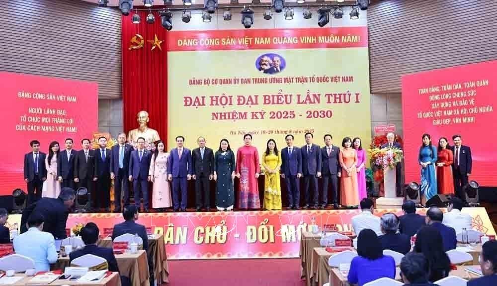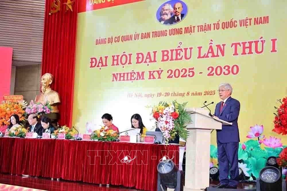 Hà Nội (TTXVN 20/8/2025) Sau 2 ngày làm việc khẩn trương, nghiêm túc, trách nhiệm, trí tuệ, đoàn kết, thống nhất cao, với phương châm hành động "Đoàn kết - Dân chủ - Đổi mới - Phát triển", sáng 20/8, Đại hội đại biểu Đảng bộ Cơ quan Ủy ban Trung ương Mặt trận Tổ quốc (MTTQ) Việt Nam lần thứ I, nhiệm kỳ 2025-2030 đã thành công tốt đẹp, hoàn thành toàn bộ nội dung, chương trình đề ra.