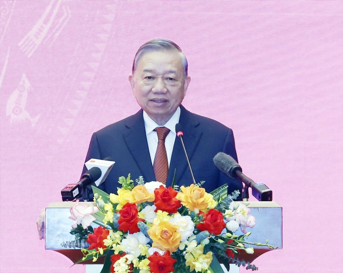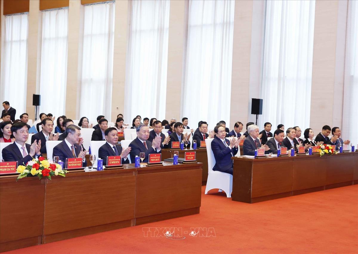 Tổng Bí thư Tô Lâm và các đại biểu tham dự Lễ công bố Quyết định của Bộ Chính trị về nhân sự Phó Bí thư Thường trực Đảng ủy Quốc hội (4/11/2025). Ảnh: Thống Nhất- TTXVN