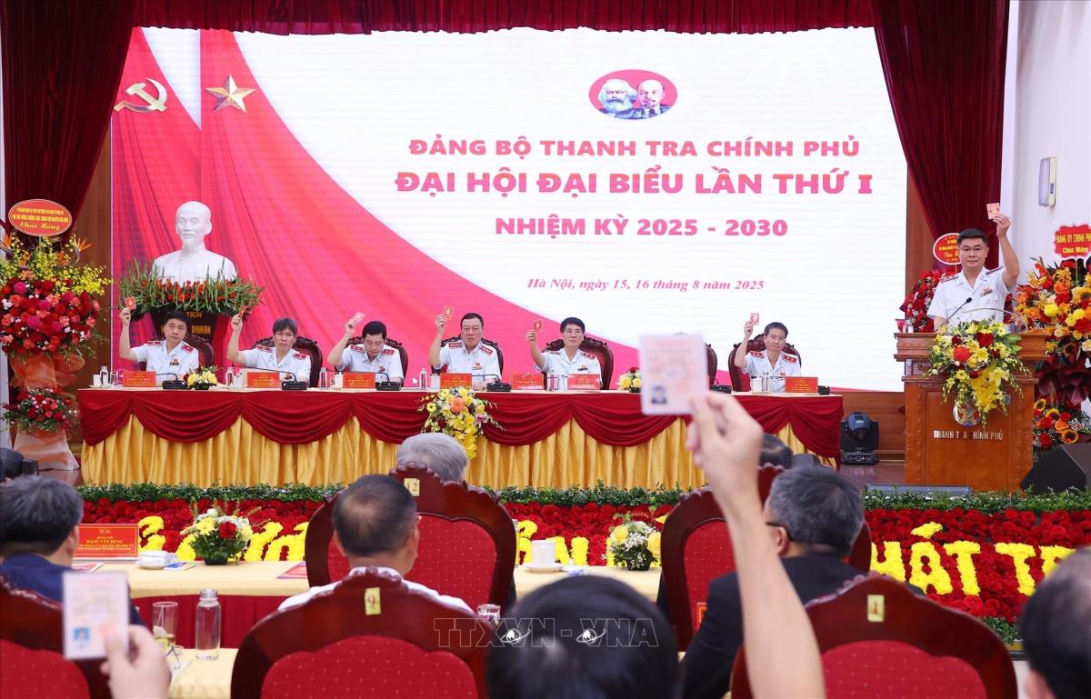Hà Nội (TTXVN 16/8/2025) Chiều 16/8, Phiên chính thức Đại hội Đảng bộ Thanh tra Chính phủ lần thứ I, nhiệm kỳ 2025-2030 diễn ra tại Hà Nội. Ủy viên Bộ Chính trị, Bí thư Trung ương Đảng, Phó Thủ tướng Thường trực Chính phủ Nguyễn Hòa Bình dự và chỉ đạo Đại hội. Cùng dự Đại hội có lãnh đạo các ban, bộ, ngành.