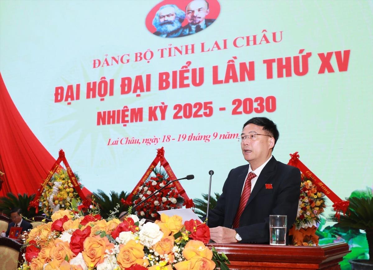 Đồng chí Lê Minh Ngân, Bí thư Tỉnh ủy Lai Châu nhiệm kỳ 2025 - 2030 phát biểu bế mạc Đại hội (19/9/2025). Ảnh: Quý Trung – TTXVN