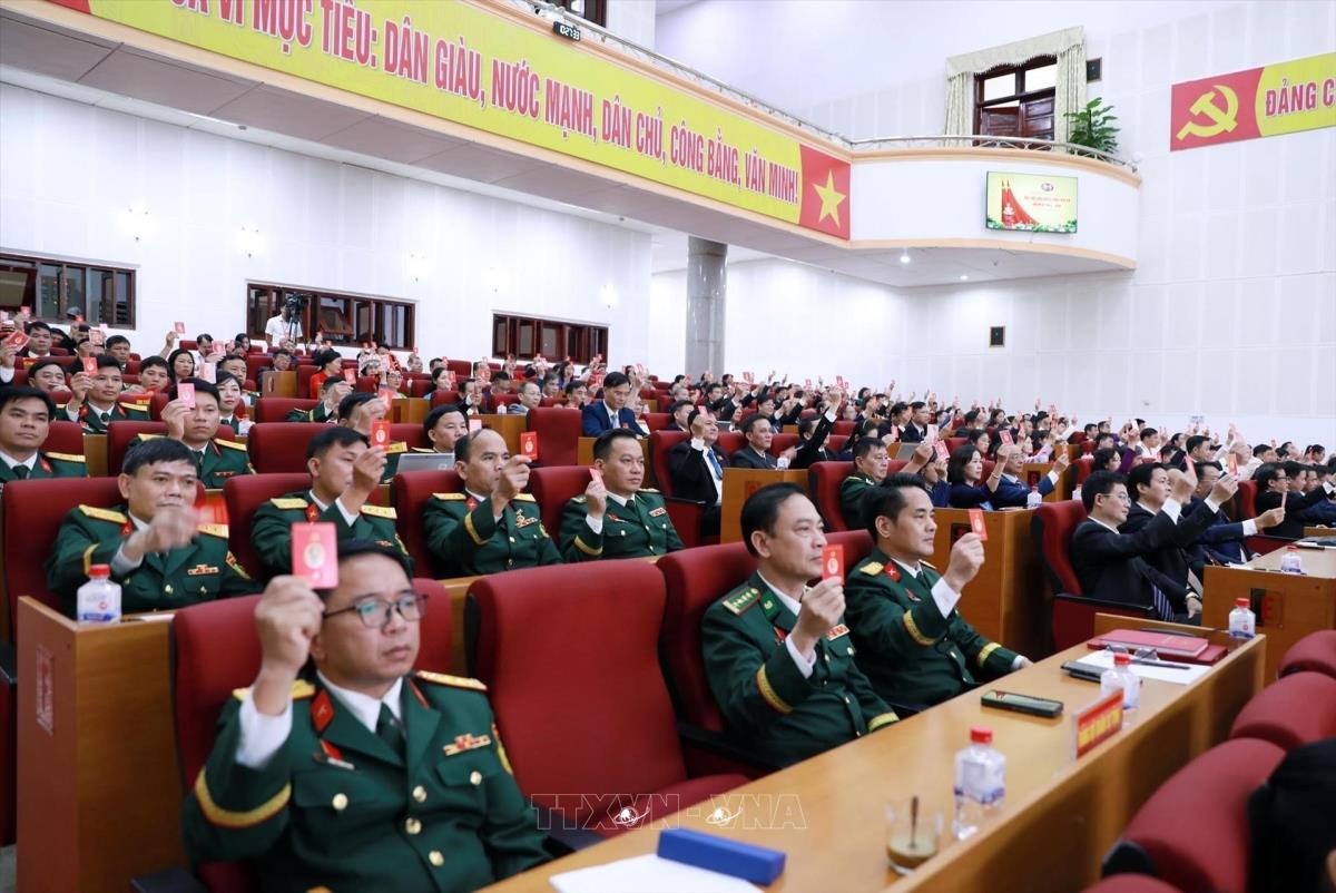 Các đại biểu biểu quyết thông qua toàn văn dự thảo Nghị quyết Đại hội (19/9/2025). Ảnh: Quý Trung – TTXVN