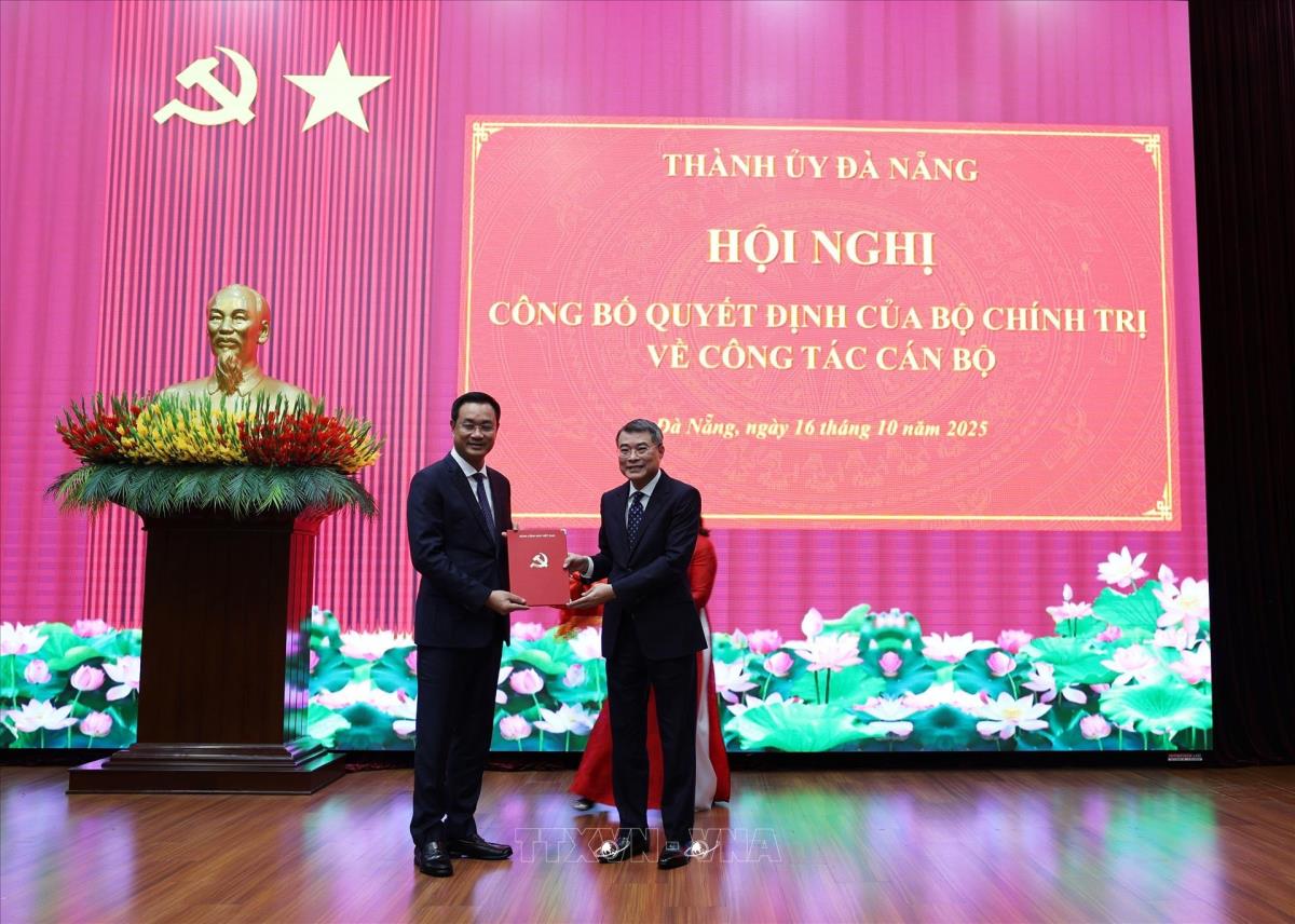 Đà Nẵng (TTXVN 16/10/2025) Chiều 16/10/2025, tại Đà Nẵng, đồng chí Lê Minh Hưng, Ủy viên Bộ Chính trị, Bí thư Trung ương Đảng, Trưởng Ban Tổ chức Trung ương đã trao Quyết định của Bộ Chính trị điều động, phân công, chỉ định đồng chí Lê Ngọc Quang, Ủy viên Trung ương Đảng, Bí thư Tỉnh ủy Quảng Trị nhiệm kỳ 2025 - 2030, tham gia Ban Chấp hành, Ban Thường vụ, giữ chức Bí thư Thành ủy Đà Nẵng nhiệm kỳ 2025 – 2030, thay đồng chí Lương Nguyễn Minh Triết vừa được chỉ định làm Bí thư Tỉnh ủy Đắk Lắk.