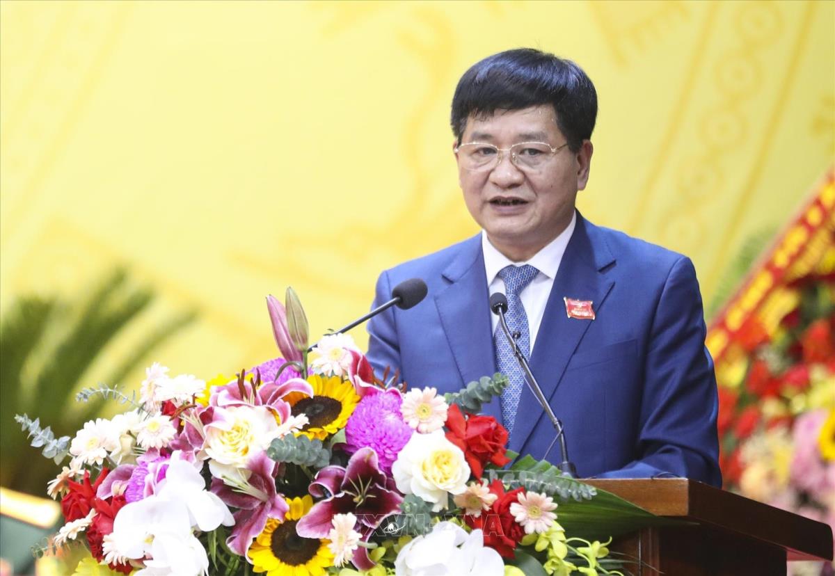 Ông Lê Thành Đô, Phó Bí thư Tỉnh ủy, Chủ tịch UBND tỉnh Điện Biên phát biểu (16/10/2025). Ảnh: Xuân Tư - TTXVN
