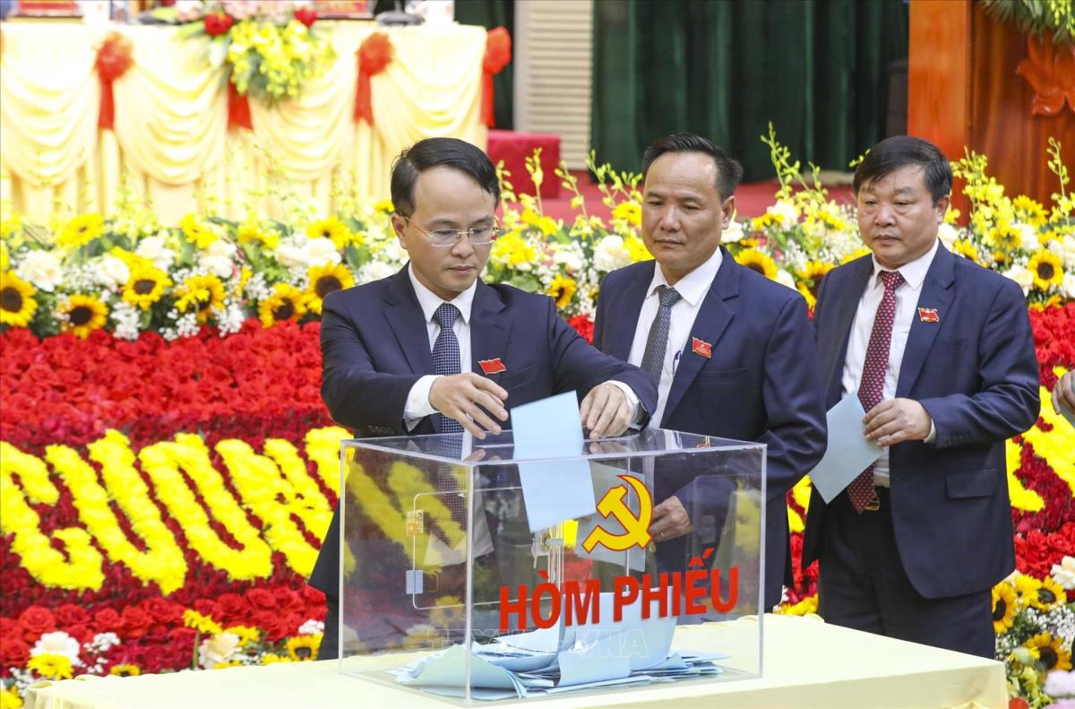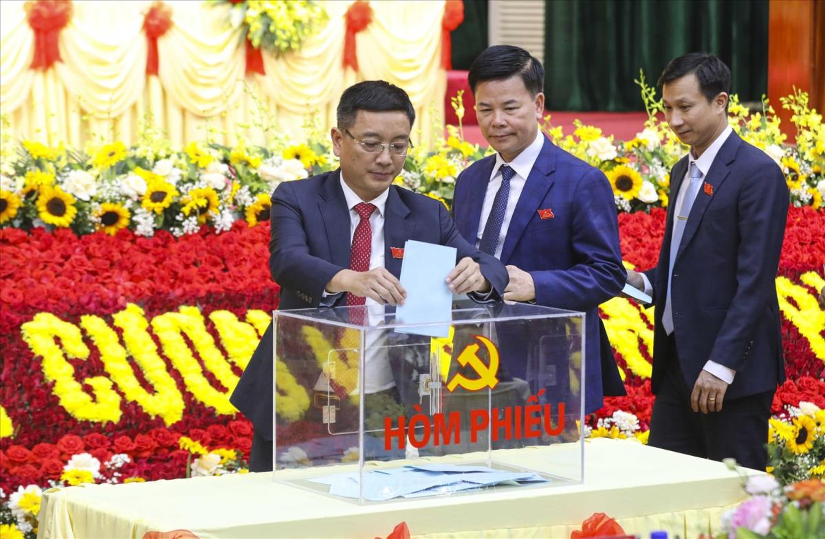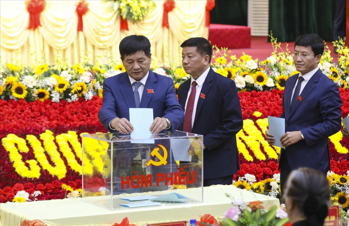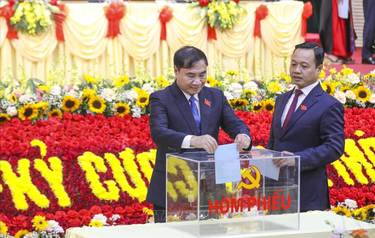 Đại biểu bỏ phiếu bầu Đoàn đại biểu dự Đại hội XIV của Đảng (16/10/2025). Ảnh: Xuân Tư - TTXVN