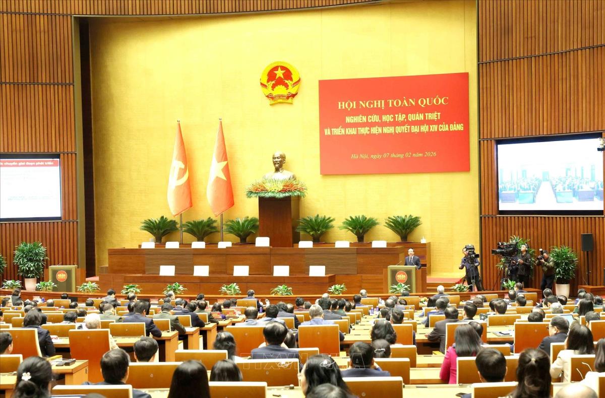 Hà Nội (TTXVN 7/2/2026) Sáng 7/2, tại Hà Nội, trong khuôn khổ Hội nghị toàn quốc nghiên cứu, học tập, quán triệt và triển khai thực hiện Nghị quyết Đại hội XIV của Đảng, đồng chí Trịnh Văn Quyết, Ủy viên Bộ Chính trị, Bí thư Trung ương Đảng, Trưởng Ban Tuyên giáo và Dân vận Trung ương đã trình bày báo cáo chuyên đề: “Một số vấn đề mới, cốt lõi và kinh nghiệm 40 năm đổi mới trong Văn kiện Đại hội XIV của Đảng”.