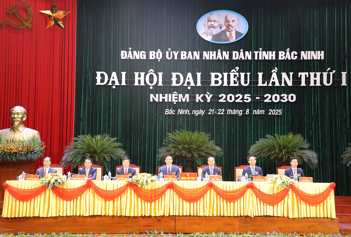 Bắc Ninh (TTXVN 22/8/2025) Trong hai ngày 21-22/8, Đảng bộ UBND tỉnh Bắc Ninh tổ chức Đại hội đại biểu lần thứ Nhất, nhiệm kỳ 2025 - 2030 với 298 đại biểu, đại diện cho trên 12.000 đảng viên trong toàn Đảng bộ.
