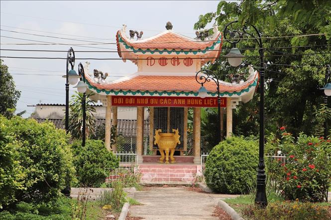 Xã Mỹ Trung nằm trong vùng Đồng Tháp Mười (Cái Bè, Tiền Giang) là vùng quê cách mạng, từng ghi nhiều chiến tích qua hai cuộc kháng chiến chống thực dân Pháp và đế quốc Mỹ. Trong ảnh: Nhà bia ghi tên các liệt sĩ làm nên chiến thắng Ngã Sáu - Mỹ Trung. Ảnh: Minh Trí/TTXVN