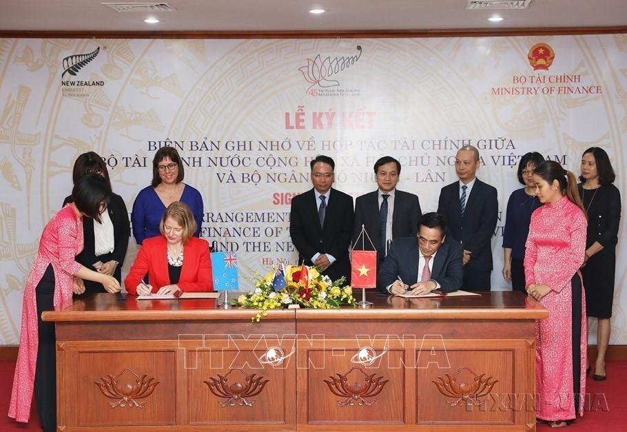 Lễ ký Biên bản ghi nhớ hợp tác tài chính giữa Bộ Tài chính Việt Nam và Bộ Ngân khố New Zealand (Hà Nội, 23/7/2020). Ảnh: Phạm Hậu - TTXVN
