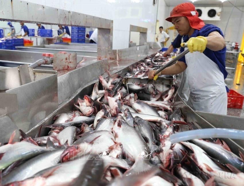 Việt Nam xuất khẩu sang New Zealand gồm các sản phẩm điện thoại các loại và linh kiện, máy vi tính, sản phẩm điện tử và linh kiện, thủy sản, hạt điều, giày dép. Trong ảnh: Chế biến cá tra xuất khẩu tại Công ty TNHH Công nghiệp Thủy sản miền Nam. Ảnh: Vũ Sinh - TTXVN