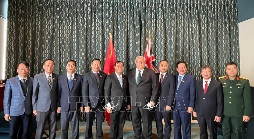Chủ tịch Quốc hội New Zealand Gerry Brownlee (thứ 5, từ phải sang) tiếp Đoàn đại biểu Ủy ban Quốc phòng, An ninh và Đối ngoại của Quốc hội Việt Nam thăm và làm việc tại New Zealand từ 21-23/8/2025. Ảnh: TTXVN phát
