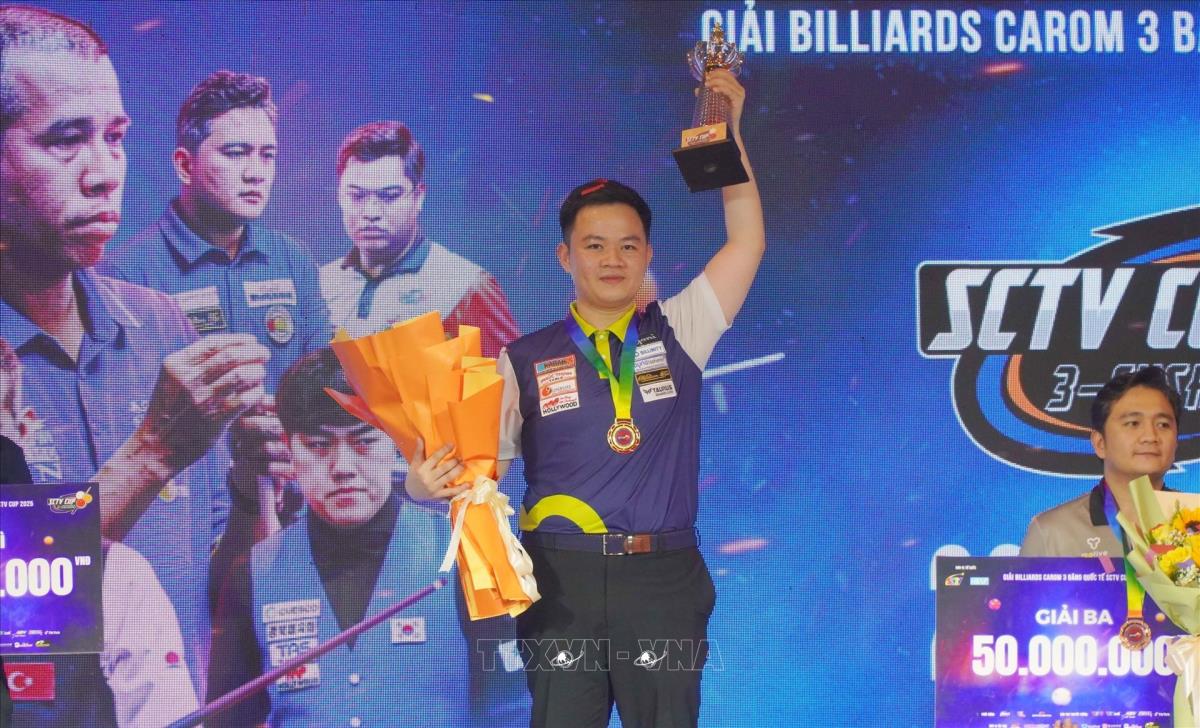 Cơ thủ Bao Phương Vinh với cúp vô địch SCTV Cup 2025 (31/5/2025). Ảnh: Trung Tuyến-TTXVN