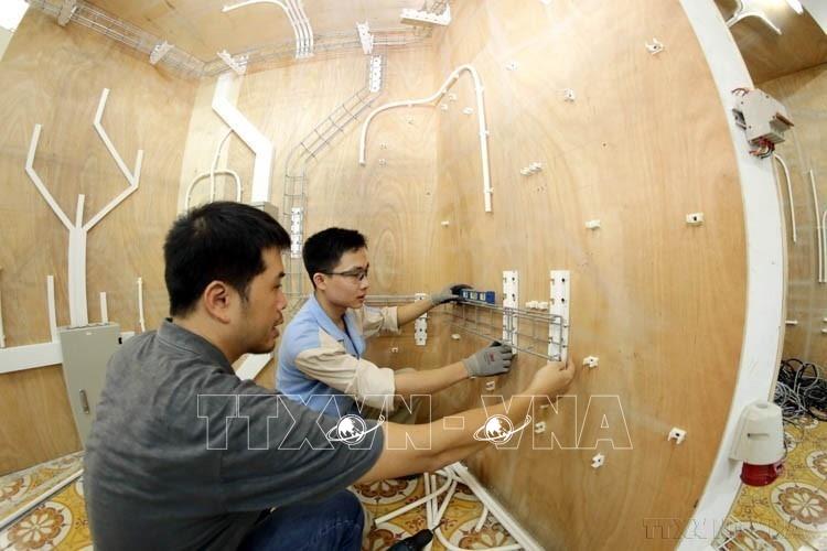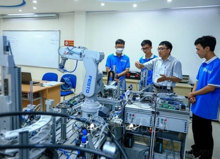 10.000 học sinh, sinh viên của trường Cao đẳng Cơ điện Hà Nội được học tập tại 7 cơ sở với trang thiết bị hiện đại, giúp học sinh, sinh viên dễ dàng tiếp cận những kỹ thuật tiên tiến nhất. Ảnh: Hoàng Hiếu - TTXVN