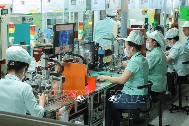 Công nhân sản xuất linh kiện điện tử tại Công ty Youngbag khu công nghiệp Bình Xuyên (Vĩnh Phúc). Ảnh: Hoàng Hùng - TTXVN