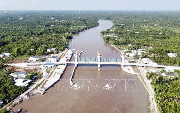 Giai cấp công nhân Việt Nam là lực lượng xã hội đi tiên phong, làm chủ những công nghệ, khoa học tiên tiến nhất của thế giới để hiện thực hóa khát vọng hùng cường của dân tộc Việt Nam. Trong ảnh: Xây dựng cống âu Rạch Mọp ngăn mặn, giữ ngọt lớn nhất Sóc Trăng. Ảnh: Trung Hiếu - TTXVN