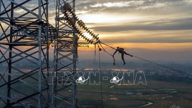 Hàng ngàn kỹ sư, công nhân ngành điện và các nhà thầu đã trần mình trong nắng, trong mưa chạy đua với thời gian trên công trường thi công Đường dây 500kV mạch 3 từ Quảng Trạch (Quảng Bình) đến Phố Nối (Hưng Yên) - công trình trọng điểm quốc gia, có ý nghĩa rất quan trọng trong việc nâng cao năng lực truyền tải điện Bắc - Nam. Ảnh: Huy Hùng - TTXVN